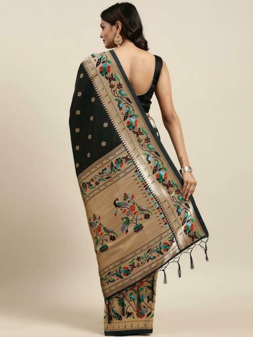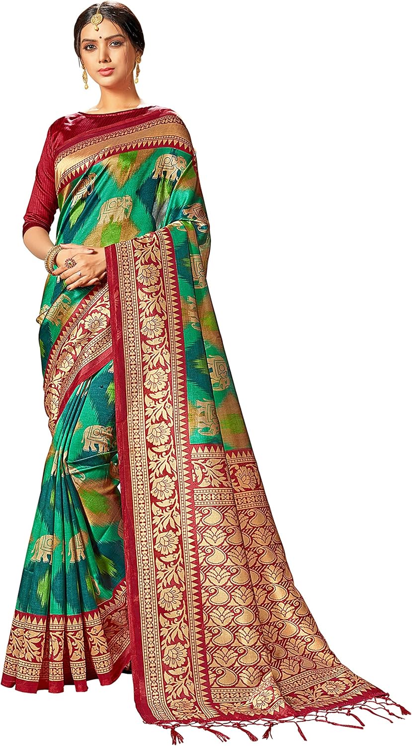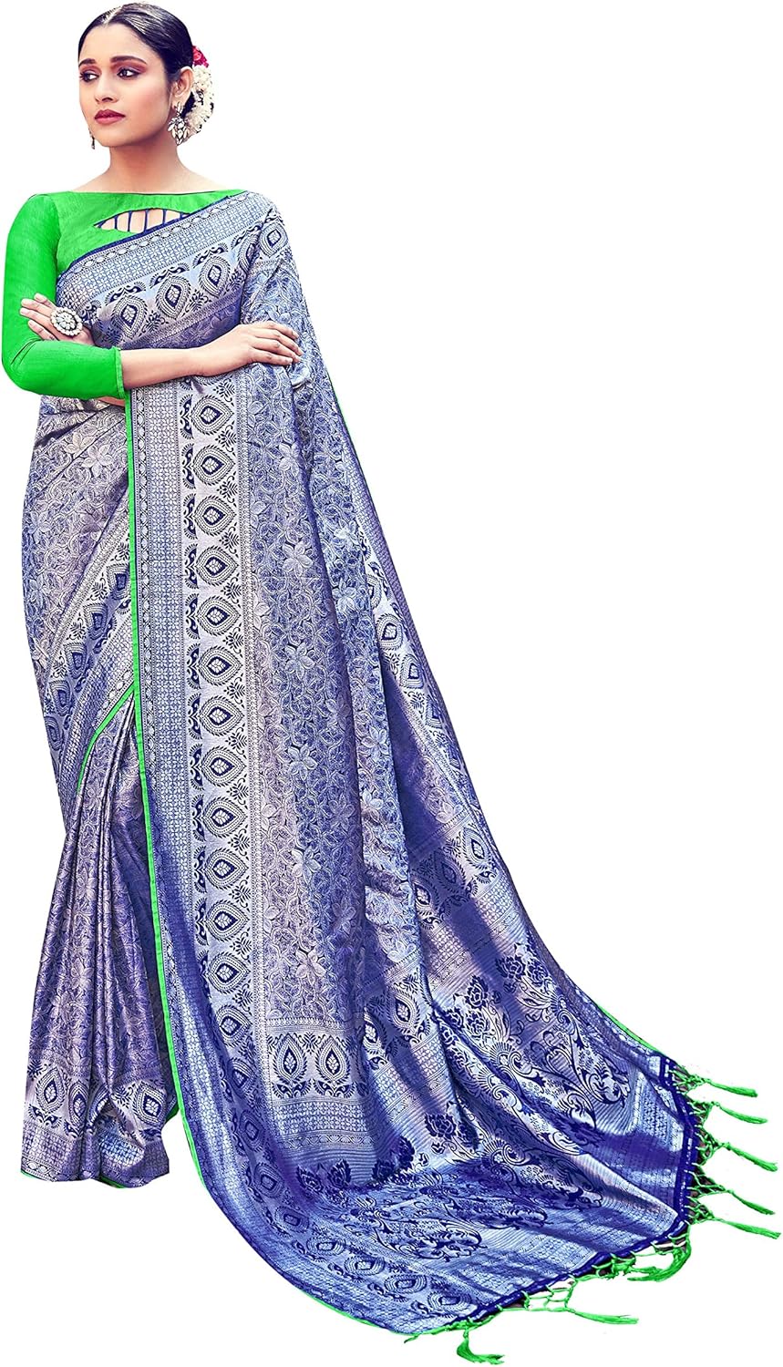 Die aufwendige Zari-Arbeit mit detaillierten Meenakari-Kaschmir-Bordüren und der reich gewebte Pallu mit eleganten Quasten machen dieses Kleidungsstück zu einem absoluten Highlight. Die mitgelieferte Bluse (0,8 Meter) aus Seidenmischung rundet den Look perfekt ab.