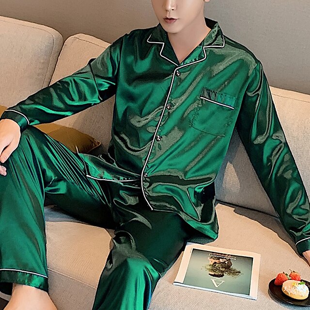 • Herren Satin Schlafanzug Hose - Bequeme Pyjama Hose Aus Seidenoptik