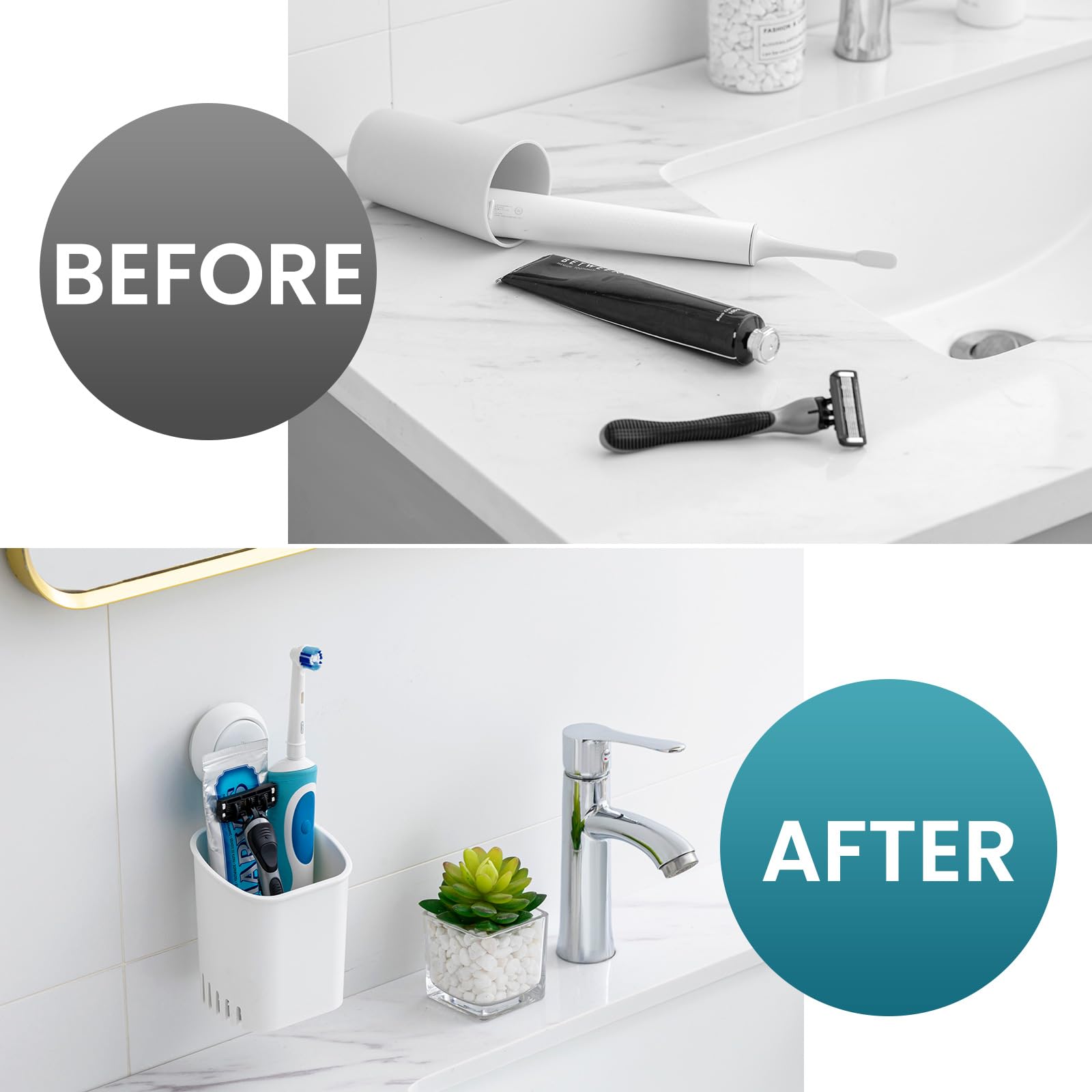 Schluss mit Chaos im Badezimmer! Dieser praktische Zahnbürstenhalter mit Saugnapf bringt Ordnung in dein Bad - ganz ohne Bohren und Kleben. Einfach die glatte Oberfläche (wie Fliesen oder Glas) sauber abwischen, den Saugnapf anbringen und festdrücken. Schon hält der Halter sicher und fest! Mit dabei ist ein stylischer Zahnputzbecher, damit auch die Zahnpasta ihren Platz hat. Das coole Design gibt's in mehreren Farben - da passt für jedes Badezimmer was dabei. Aus hochwertigem PET-Material, das rostfrei ist und lange hält. Mit Maßen von 12,5 x 8,5 x 9 cm ist der Halter kompakt aber geräumig genug für mehrere Zahnbürsten. Besonders praktisch: Du kannst den Halter einfach abnehmen und reinigen - keine lästigen Wasserflecken mehr! Perfekt für die ganze Familie oder auch fürs Gäste-WC. Die Montage ist wirklich kinderleicht und in wenigen Minuten erledigt. So macht Badezimmer-Ordnung Spaß! Tipp: Nach dem Anbringen am besten 12 Stunden warten, bevor du die Bürsten einhängst - dann hält's besonders sicher.
