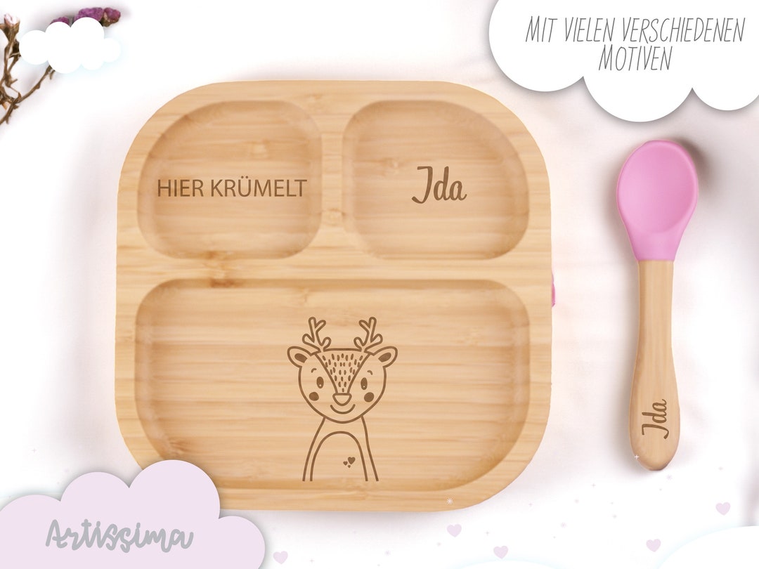 • Bambus Babyteller Mit Saugnapf - Rutschfester Snackteller Für Kleinkinder - BPA Frei & Leicht Zu Reinigen