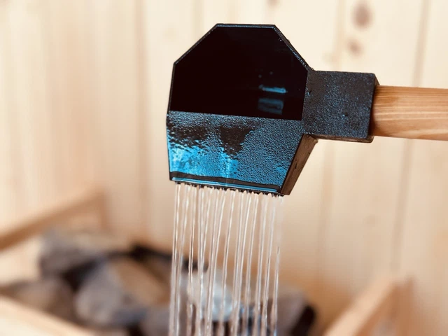 Professioneller Sauna-Genuss! Diese handgefertigte Saunakelle 'Regenfall' von CSD sorgt für perfekte Hitzeverteilung und intensives Aufguss-Aroma. Mit speziellem Regeneffekt - das Wasser fließt in feinen Strahlen auf die Steine und verdampft gleichmäßiger. 300ml Fassungsvolumen, Griff aus massivem Buchenholz. Viel besser als herkömmliche Kellen - ätherische Öle entfalten sich voller und der Duft verteilt sich optimal im ganzen Saunaraum. Aus PLA, Buchenholz und wasserfestem Leim - hält auch bei regelmäßiger Nutzung. Das perfekte Geschenk für Sauna-Liebhaber!