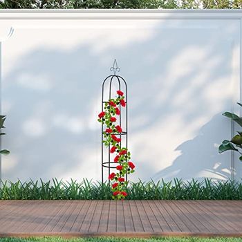 Gib deinen Kletterpflanzen die Unterstützung, die sie verdienen! Diese stabile Rankhilfe aus Metall ist 145 cm hoch und 27 cm breit - perfekt für Rosen, Clematis, Efeu oder sogar Himbeeren. Der dekorative Schäferstab mit geschwungenen Streben und Zierspitzen bringt romantisches Flair in deinen Garten. 🌹 Der praktische Haken eignet sich ideal für Laternen, Blumenampeln oder Windspiele. Einfach mit den Erdspießen in Beet oder Rasen stecken - keine Montage erforderlich! Aus robustem, witterungsbeständigem Eisen gefertigt und in schwarzer Lackierung. Verbessert das Pflanzenwachstum und ist ein echter Hingucker in jedem Garten!