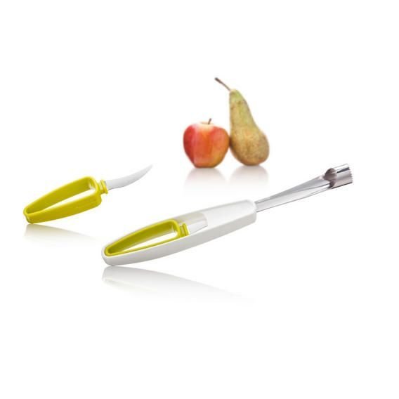 Wow, dieser Ananasschneider von Vacu Vin (jetzt Tomorrow's Kitchen) ist ja mal genial! In nur 30 Sekunden hast du eine frische Ananas geschält, entkernt und in perfekte Scheiben geschnitten - sicherer als mit jedem Messer! Der Korkenzieher-Mechanismus macht's möglich: Einfach auf die Ananas setzen, drehen und schon hast du gleichmäßige Ringe. Der integrierte Zerteiler macht daraus mundgerechte Stücke - perfekt für Obstsalat oder Snacks. Mit dem Knopf am Griff lassen sich die Ringe leicht entfernen. Und das Beste: Die Ananas-Schale bleibt als natürliche Schale erhalten - super für die Präsentation! 3 verschiedene Messer für unterschiedliche Ananas-Größen. Spülmaschinenfest und langlebig - dieser Klassiker hat schon viele Awards gewonnen! Hol ihn dir und mach die Ananas-Zubereitung zum Kinderspiel!