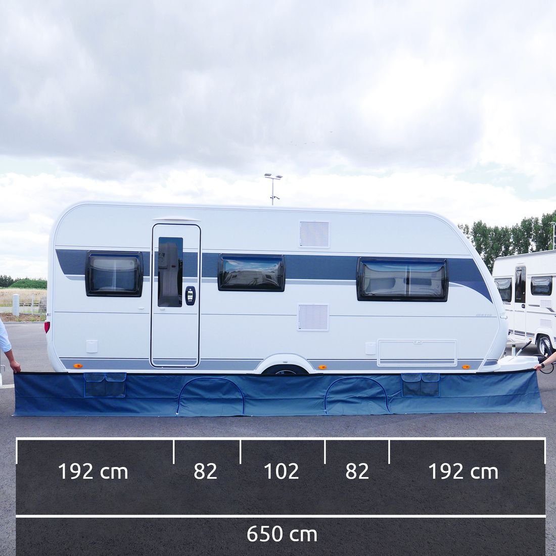 Schütz deinen Wohnwagen oder Wohnmobile mit dieser robusten Windblende! Aus stabilem PVC-Material, 70 cm hoch und 10 m lang - bietet vollständigen Unterbodenschutz. Mit 6 mm Keder passt perfekt in die Kederschiene deines Wohnwagens. Ösen alle Meter zum einfachen Abspannen mit Zeltheringen. Schützt zuverlässig vor Wind, Wasser, Staub und Rost - dein Wohnwagen bleibt innen sauber und warm. Besonders praktisch bei kaltem Wetter oder auf längeren Trips. Einfach in der Kederschiene befestigen und mit Heringen am Boden fixieren. Auch die Bereifung wird mit abgedeckt - ein echter Allrounder. Macht den Aufenthalt im Wohnwagen so viel gemütlicher. Einfach montieren und sich über besseren Komfort freuen. Für alle Camper, die value auf guten Witterungsschutz legen. Ob kurz Trip oder lange Reise - diese Windblende ist immer praktisch. Einfach auspacken, anbringen und entspannt reisen!