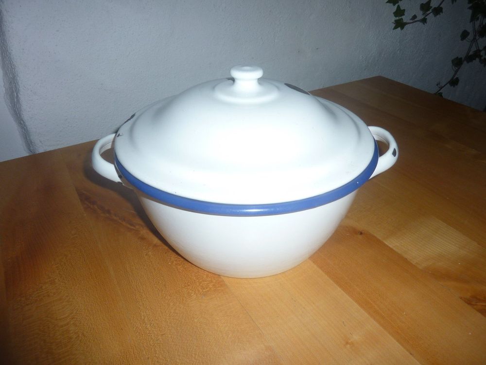 Diese Vintage Emaille Schüssel mit Deckel ist ein echter Klassiker für deine Küche! Hergestellt aus hochwertigem Emaille, ist sie nicht nur wunderschön anzusehen, sondern auch super praktisch. Die gratenfreie Verarbeitung schützt deine Hände und deinen Mund - keine scharfen Kanten, an denen du dich verletzen könntest! Mit dem passenden Deckel bleibt der Inhalt frisch und trocken - perfekt zur Aufbewahrung von Schmalz, Öl, Teig oder anderen Lebensmitteln. Die Schüssel ist vielseitig einsetzbar: Ob als Rührschüssel für Kuchenteig, als Servierschüssel für Salate, als Obstschale oder sogar als Aufbewahrungsbehälter - deiner Kreativität sind keine Grenzen gesetzt! Das Emaille-Material ist leicht zu reinigen, lebensmittelecht und absolut geschmacksneutral. Der nostalgische Vintage-Look verleiht deiner Küche einen besonderen Charme und die robuste Verarbeitung garantiert eine lange Lebensdauer. Ein echter Allrounder, der in keiner Küche fehlen sollte! Perfekt für alle, die Wert auf praktische und gleichzeitig stylische Küchenutensilien legen. Hol dir dieses zeitlose Stück und entdecke die vielen Einsatzmöglichkeiten dieser wunderbaren Emaille-Schüssel!