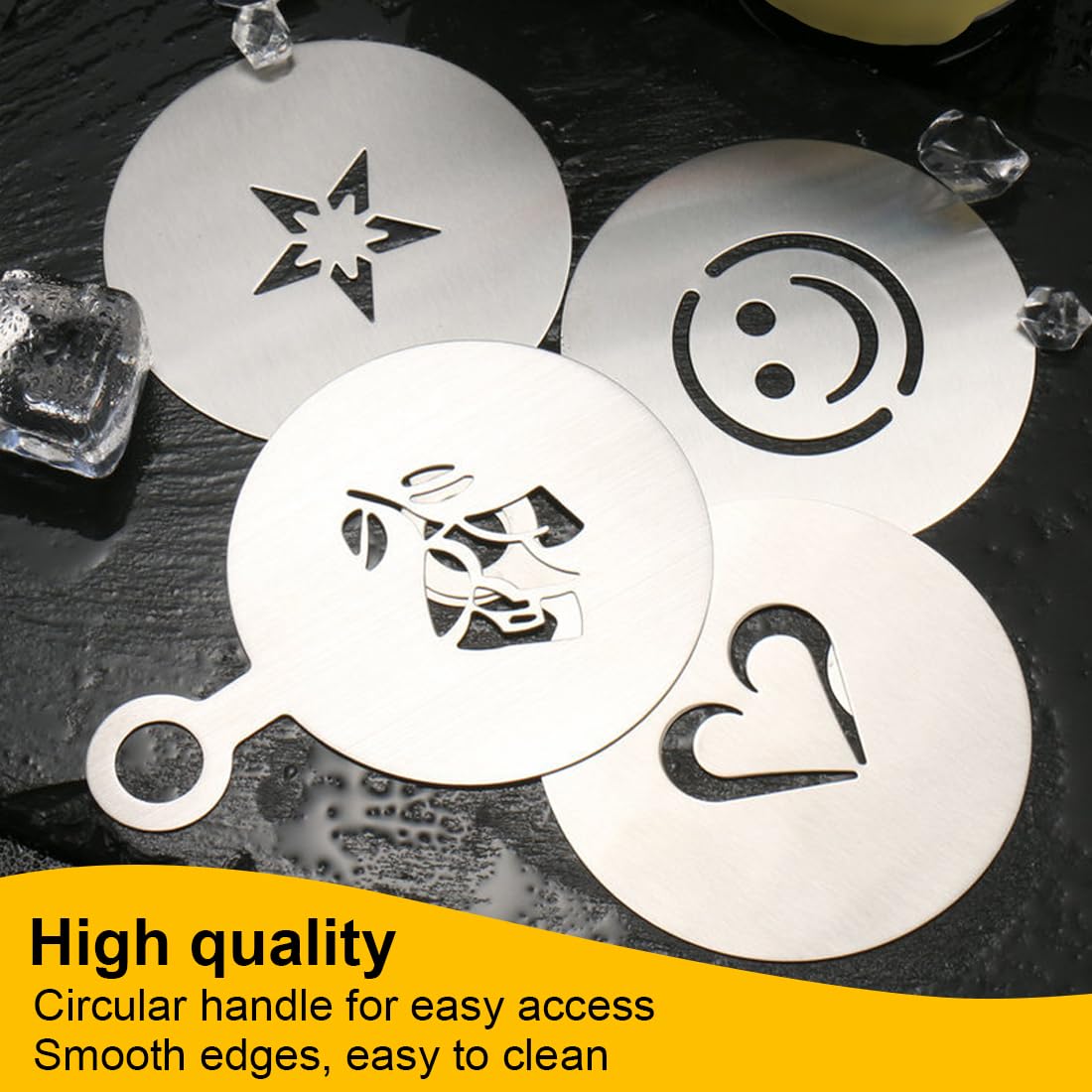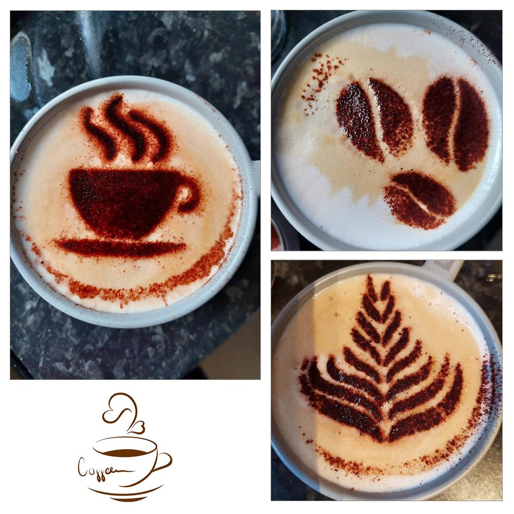 Kaffee-Liebhaber, aufgepasst! Mit diesen 4 Edelstahl-Schablonen machst du aus jedem Cappuccino oder Latte Macchiato ein kleines Kunstwerk. Einfach die Schablone auf die Tasse legen, Kakao oder Zimt drüberstreuen – und zack: ein perfektes Muster!☕️