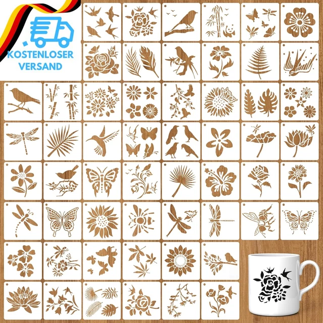 Kreativität ohne Grenzen! Mit diesen 30 verschiedenen Blumen-Schablonen verwandelst du Wände, Möbel und Textilien in kunstvolle Unikate. Aus stabilem PET-Material gefertigt, sind die Schablonen wiederverwendbar und garantieren scharfe Konturen. Jede Schablone misst 15x7cm und bietet detailreiche Blumenmotive für verschiedene Projekte. Ob mit Sprühfarbe, Acrylfarbe oder Textilfarbe - die Anwendung ist denkbar einfach: Schablone auflegen, Farbe auftragen, abheben und staunen! Perfekt für Anfänger und Profis, um individuelle Dekorationen zu gestalten. Ideal für Wände, Holz, Möbel, Kissen, T-Shirts oder Grußkarten. Die Schablonen helfen dir, auch ohne künstlerische Vorkenntnisse tolle Ergebnisse zu erzielen. Entwickle deinen eigenen Stil und gestalte deine Umgebung nach deinen Vorstellungen. Ein fantastisches Geschenk für alle Bastelbegeisterten! Einfach Schablone wählen, Farbe auftragen und dein persönliches Kunstwerk erschaffen - der Kreativität sind keine Grenzen gesetzt!