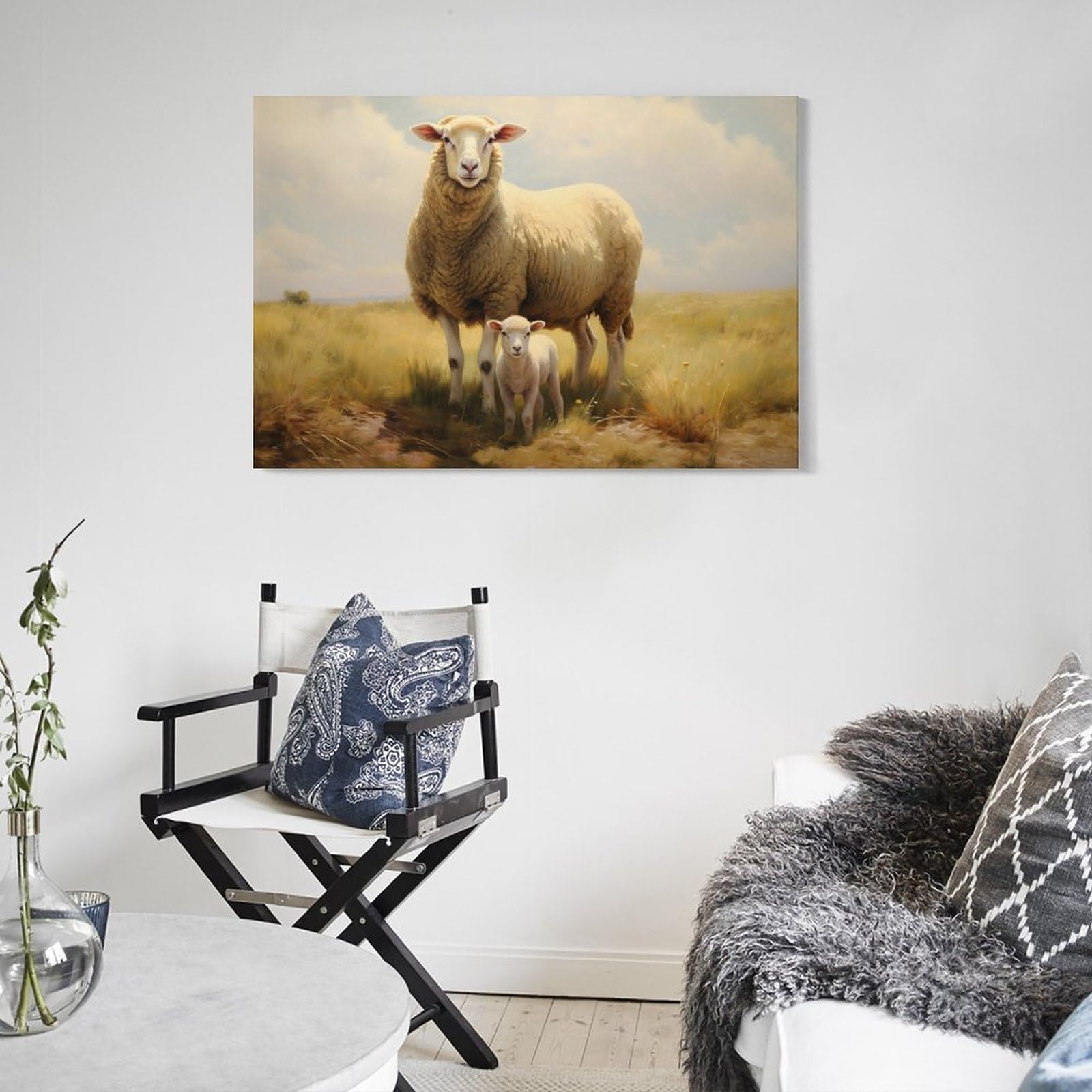 • Wandbild Schwarze Schafe | Leinwanddruck 40x50cm | Bauernhof Deko | Ohne Rahmen