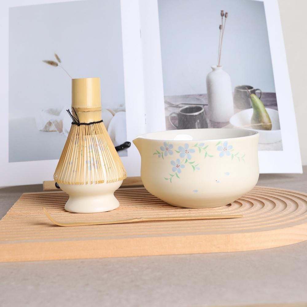 Total schön dieses Matcha-Set! Komplett handgefertigt aus hochwertiger Keramik und in diesen wunderschönen Blau-Grün-Tönen glasiert. Das Muster sieht aus wie ein sternenklarer Nachthimmel - einfach magisch! Die Schale hat einen praktischen Ausgießer und liegt super in der Hand. Dazu gehört ein passender Halter, damit alles seinen Platz hat. Perfekt für die tägliche Matcha-Zubereitung oder für besondere Tee-Zeremonien. Das 5-teilige Set enthält alles was du brauchst: Matcha-Schale (15oz/450ml), Bambus-Besen, Bambus-Löffel, Chasen-Halter und Edelstahl-Sieb. Mach deine Tee-Zeit zu einem richtigen Erlebnis - damit schmeckts gleich doppelt so gut!
