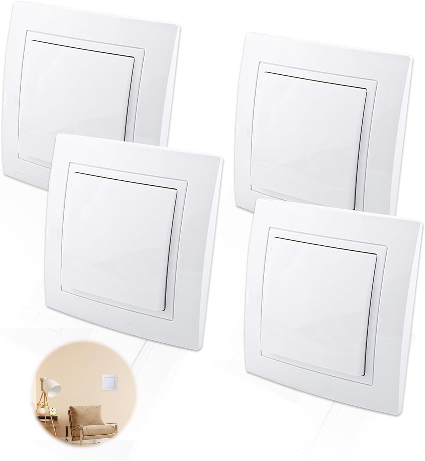 LEKEFETO 4er Set Unterputz Schalter - 10A 250V Weiß