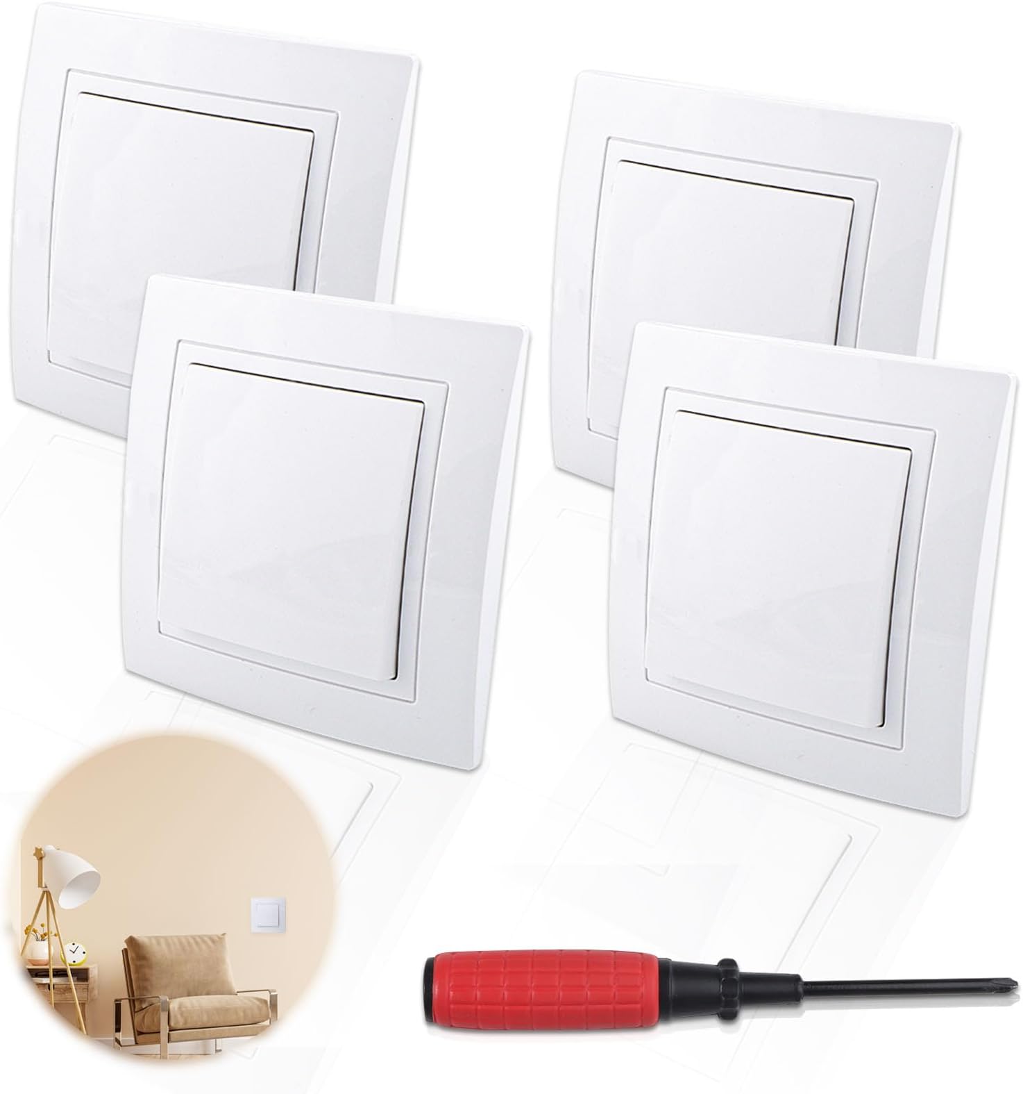 Perfekt für deine nächste Renovierung! Dieses 4er Set von LEKEFETO Unterputz-Schaltern ist genau das Richtige für ein einheitliches Erscheinungsbild in deinem Zuhause. Jeder Schalter hat 10A bei 250V - mehr als genug Leistung für die meisten Haushaltsanwendungen! Im schicken Weiß passen sie zu jedem Einrichtungsstil - ob modern, skandinavisch oder klassisch. Die Maße von 82x82mm mit Einbaumaß 60x60mm sind Standard - passt in alle gängigen Unterputzdosen! Aus hochwertigem PC-Material gefertigt - robust und langlebig auch bei häufiger Nutzung. Mit IP20 Schutzgrad für den Einsatz in trockenen Innenräumen. Die All-in-One Bauweise macht die Installation super einfach - alles in einem Teil! Im Lieferumfang ist sogar ein Kreuzschlitzschraubendreher enthalten - wie serviceorientiert! Perfekt für Wohnräume, Büros oder Werkstätten. Einfach austauschen und sich über das frische, einheitliche Aussehen freuen! Wichtig: Installation immer durch einen Elektriker durchführen lassen! Mach deine Elektroinstallation sicher und stylisch - mit diesem praktischen 4er Set!