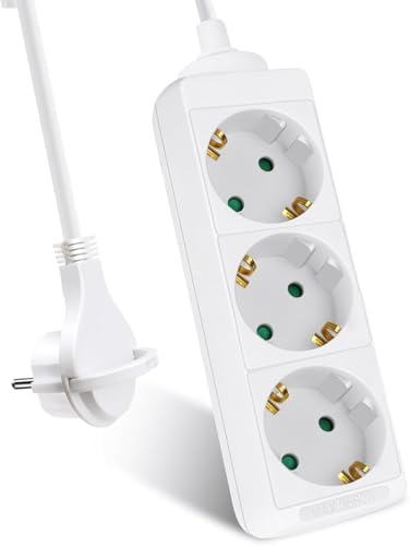 Praktisch! Diese 3-fach Steckdosenleiste mit 1,5 Meter Kabel hat für jede Steckdose einen eigenen Schalter. Musst nicht mehr ständig Stecker ziehen - einfach den Knopf drücken! Mit Kindersicherung, damit neugierige kleine Finger sicher sind. Überstromschutz schützt deine Geräte vor Schäden. Kompakt und leicht - perfekt für Wohnzimmer, Büro oder Küche. Passt in deutsche Steckdosen und erfüllt alle EU-Standards. Aus feuerfestem PC-Material und mit rutschfester Unterseite. Einfach einstecken und schon hast du mehr Steckplätze für alle deine Elektrogeräte. Super praktisch und sicher!