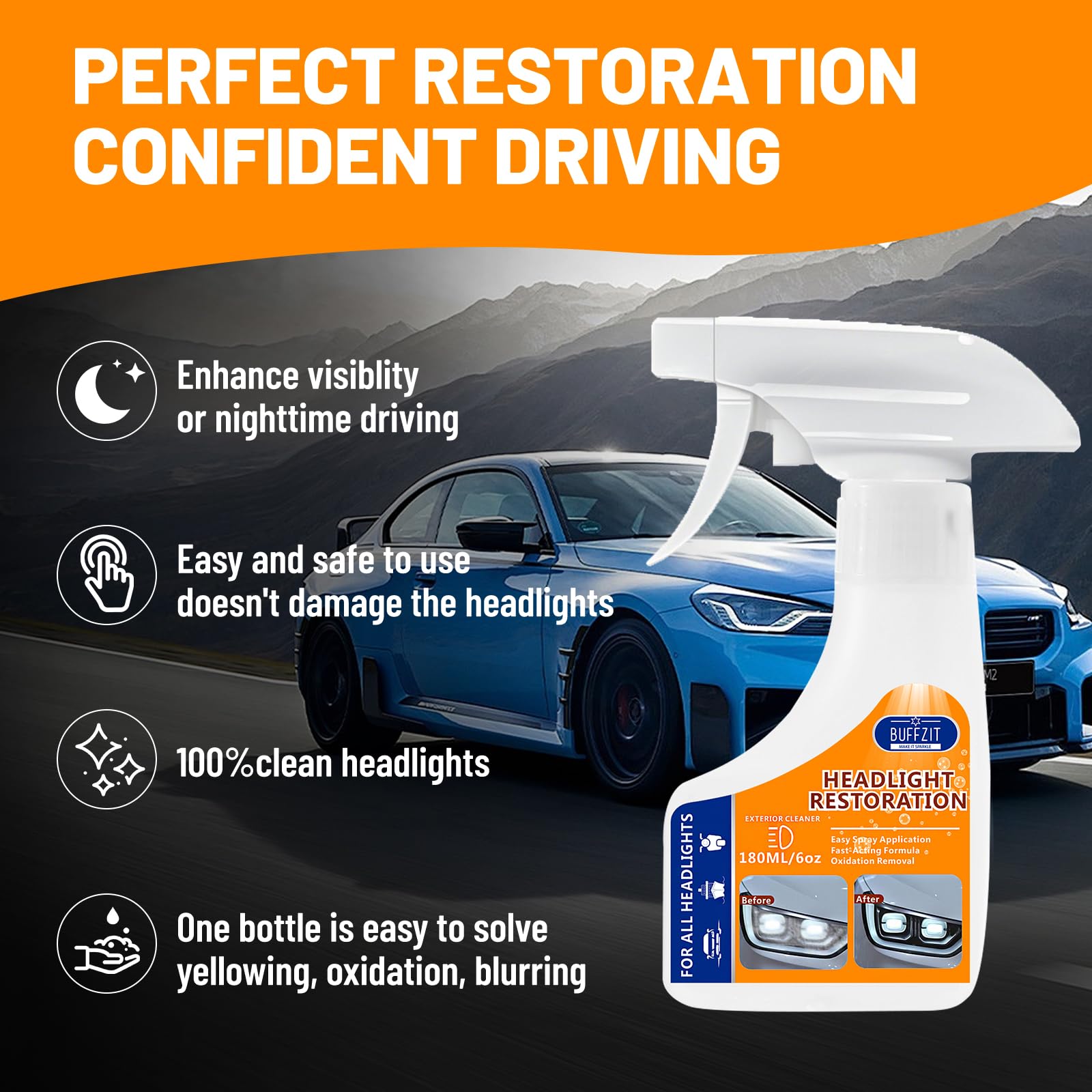 Mach deine Scheinwerfer wieder klar wie neu! Das Ogas Headlight Restoration Kit entfernt Vergilbung, Trübungen und Oxidation in nur einem Schritt - ganz ohne schleifen! Einfach aufsprühen, einwirken lassen und mit dem inkludierten Mikrofasertuch abwischen - schon sind die Scheinwerfer wieder durchsichtig. Die 180ml Flasche reicht für mindestens 4 Scheinwerfer-Paare - super wirtschaftlich! Besonders clever: Die Formel hinterlässt eine hydrophobe Schutzschicht, die Wasser, Schmutz und UV-Strahlen abweist. So bleiben deine Scheinwerfer länger klar und hell! Perfekt für mehr Sicherheit bei Nachtfahrten - bessere Sicht garantiert! Funktioniert bei allen Fahrzeugen - Auto, LKW, Motorrad. Ohne chemische Reiniger oder aufwändige Arbeit - wirklich kinderleicht! Professionelle Ergebnisse für Zuhause - spart teure Werkstattbesuche! Die Kristallklare Optik macht dein Auto sofort jünger aussehen. Einfach in der Anwendung - kein Spezialwerkzeug nötig! Auch für Rückleuchten und andere Kunststoffteile geeignet. Hol dir wieder strahlende Scheinwerfer - für mehr Sicherheit und ein top gepflegtes Auto!