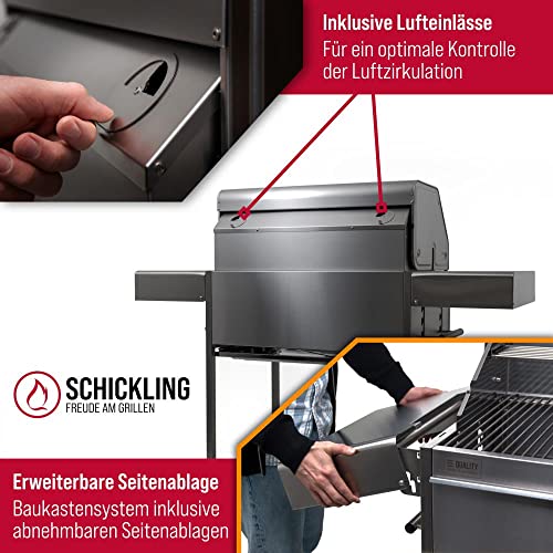 Grill-Profi gesucht? đ„ Der Schickling Walter XL ist ein echter Traum fĂŒr jeden Grill-Liebhaber! Made in Germany und aus hochwertigem Edelstahl gefertigt, hĂ€lt dieser Grill ein Leben lang. Mit 71x45 cm GrillflĂ€che und 66,5 kg Eigengewicht steht er bombenfest. Das geniale 5-fach verstellbare System ermöglicht perfekte Temperaturkontrolle. Die NachfĂŒllklappe lĂ€sst dich wĂ€hrend des Grillens bequem Kohle nachlegen. Inklusive Thermometer (0-500°C), herausnehmbarer Aschewanne und praktischem Unterschrank mit Soft-Close TĂŒren. Die 4-teiligen Edelstahl-Roste passen in jede SpĂŒlmaschine. Mit LeichtlaufrĂ€dern und kĂŒhl bleibenden Griffen ist er super mobil. Ob mit Holzkohle, Briketts oder Spaltholz - dieser Grill macht alles mit. Deutsche QualitĂ€t vom Feinsten fĂŒr unvergessliche Grill-Abende!