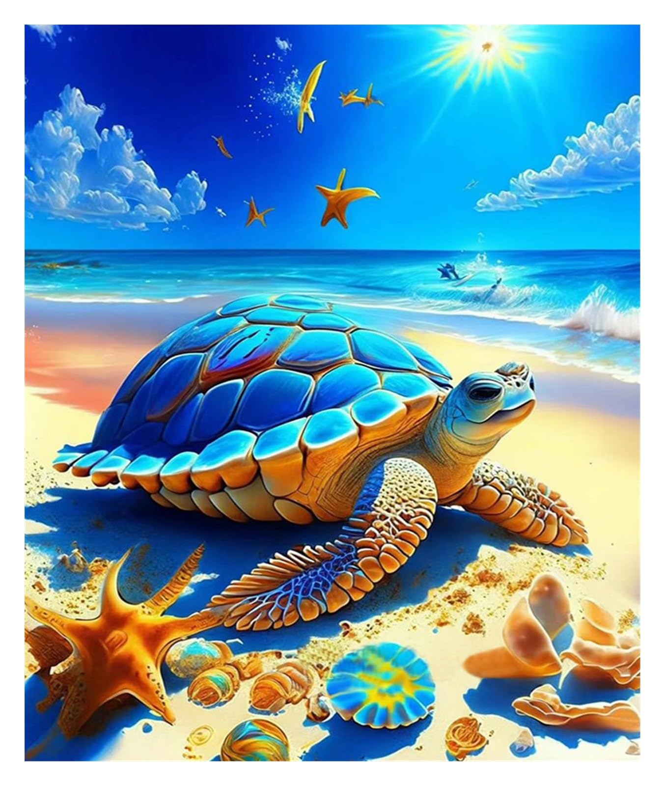 Entspannungssuchende und Kreative, dieses Diamond Painting Set mit süßer Schildkröte bringt Farbe in euren Alltag! Das 30x40cm große Set enthält alles, was ihr braucht: hochauflösende selbstklebende Leinwand, funkelnde 5D-Diamanten in vielen Farben und sogar 30% Ersatzsteinchen. Die klaren Symbole auf der Leinwand machen das Platzieren der runden Diamanten zum Kinderspiel. Perfekt für Anfänger und Fortgeschrittene - einfach Diamant für Diamant setzen und dabei wunderbar abschalten. Das fertige Bild mit dreidimensionalem Effekt wird zum echten Hingucker in Wohnzimmer, Schlafzimmer oder Büro. Therapeutisch wertvoll und meditativ - ideal zum Stressabbau. Ein wunderschönes DIY-Projekt, das nicht nur Spaß macht, sondern auch ein einzigartiges Kunstwerk entstehen lässt!