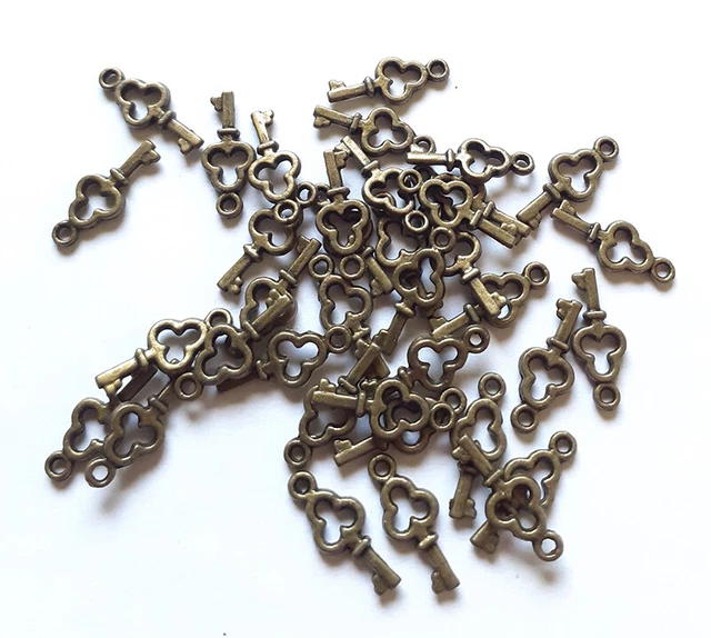 Total cooles Steam-Punk-Set! Diese 30 retro Schlüssel-Anhänger in Bronze-Optik sind perfekt für alle Bastelfans. Du bekommst 3 verschiedene Designs - von jedem Style 10 Stück. Mit 6-6,5cm Länge sind sie ideal für Halsketten, Schlüsselbunde oder Deko-Projekte. Aus Metalllegierung und komplett bleifrei, also absolut unbedenklich. Ob für Hochzeitsdekoration, als Geschenkanhänger oder für deine eigene Schmuck-Kreation - hier ist für jede Idee was dabei! Die antike, rustikale Optik gibt jedem Projekt sofort diesen besonderen Vintage-Charme. Einfach ein Band durch den Ring ziehen und schon hast du eine individuelle Kette. Deiner Kreativität sind keine Grenzen gesetzt! Perfekt auch für DIY-Fans, die was Einzigartiges schaffen wollen.