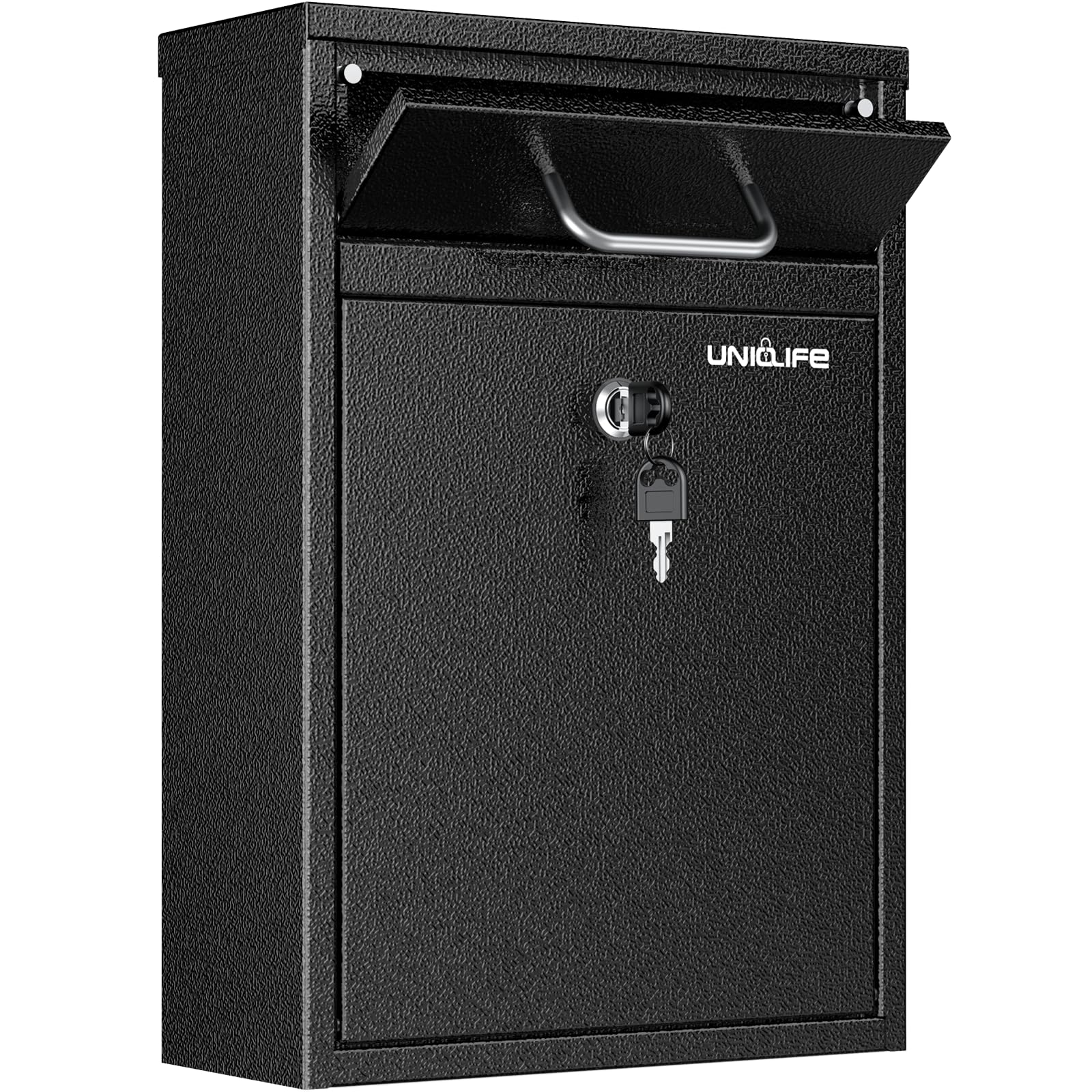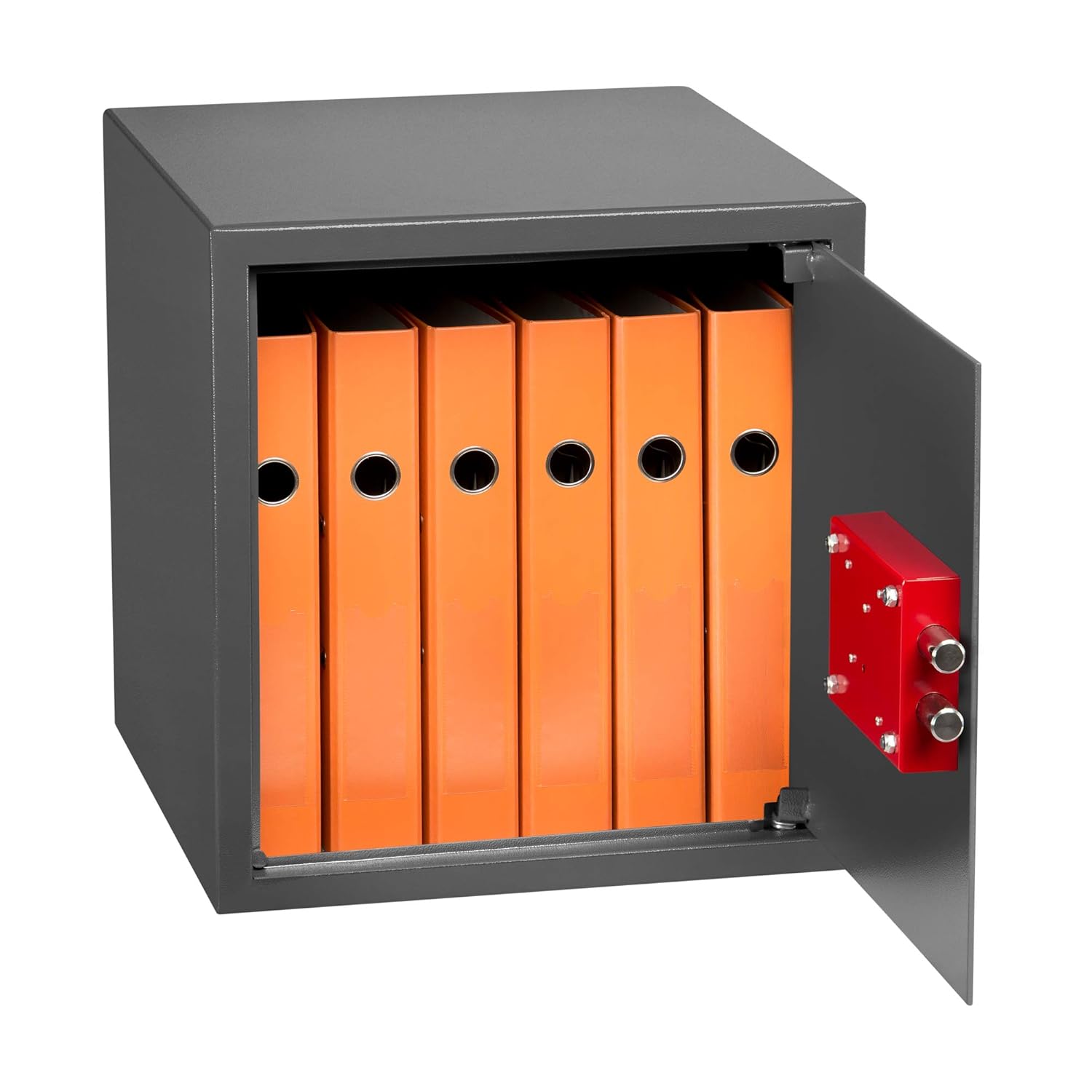 Aus robustem 0,8mm Stahl gefertigt, hält die Box Einbrechern stand. Die geräumige Innenfläche bietet Platz für Dokumente, Schlüssel, Bargeld und mehr.
