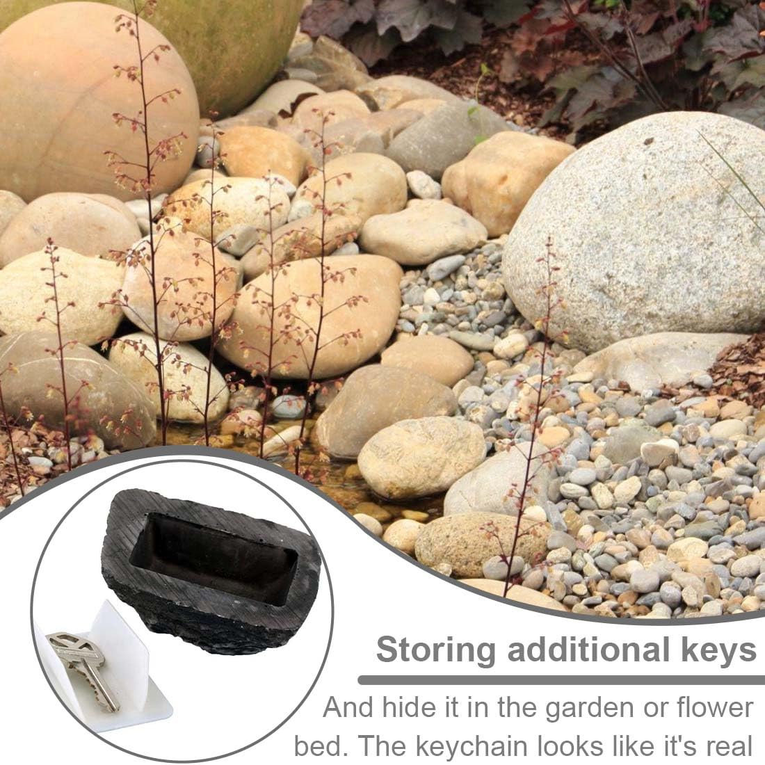 Perfekt für Garten, Terrasse oder Vorgarten. Einfach zwischen die echten Steine legen und keiner merkt was. Selbst bei Regen kein Problem - das Ding ist komplett wasserdicht! Deine Schlüssel bleiben trocken und rostfrei.