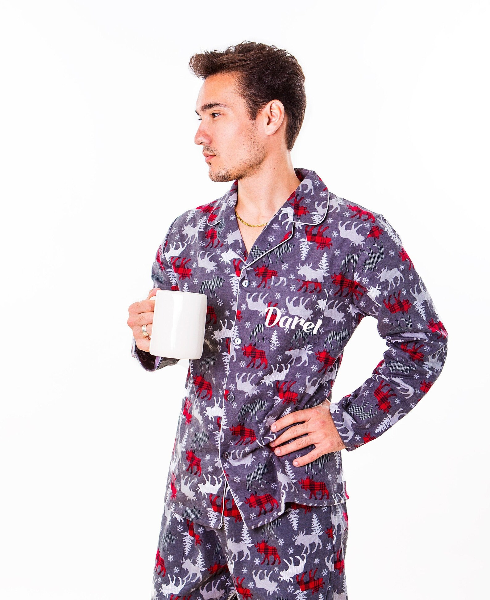 Bereit für die gemütlichste Weihnachtszeit ever? Dieser total kuschelige Ganzkörper-Schlafanzug für Herren macht jede Winter-Nacht zum Highlight! Aus superweichem, flauschigem Material gefertigt, fühlst du dich darin wie in einer warmen Umarmung. Das niedliche Rentier-Motiv versprüht sofort Weihnachtsstimmung und bringt jeden zum Lächeln. Mit praktischem Reißverschluss vorne ist das An- und Ausziehen ganz einfach - kein mühsames Über-den-Kopf-Ziehen mehr! Die integrierte Kapuze sorgt für extra Kuschelfaktor und hält deinen Kopf schön warm, wenn's mal etwas zugig ist. Ob als Weihnachtsgeschenk für deinen Partner, deinen Vater, Bruder oder einfach für dich selbst - dieser Schlafoverall ist der Hit unter dem Weihnachtsbaum! Perfekt für gemütliche Filmabende, die Weihnachtsfeiertage oder einfach so, wenn du es dir zu Hause richtig gemütlich machen willst. Die Größenvariation passt für die meisten Männer und das Design ist so lustig, dass du garantiert der Star jeder Weihnachtsfeier wirst. Wichtig: Dies ist ein Ganzkörperanzug (Onesie), der von den Schultern bis zu den Füßen reicht - ultimative Gemütlichkeit also! Mach dich bereit für Komfort auf ganzer Linie und werde zum kuscheligen Weihnachts-Rentier - ho, ho, ho!