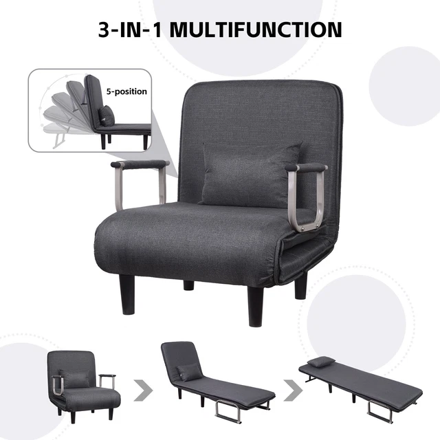 Platzprobleme? Dieser 3-in-1 Schlafsessel ist die Lösung! Ein Möbelstück, das alles kann: gemütlicher Sessel, relaxter Loungesessel und vollwertiges Einzelbett in einem. Die Rückenlehne ist 6-fach verstellbar - von aufrechtem Sitzen bei 80° bis zum flachen Liegen bei 180°. Perfekt fürs Fernsehen, Lesen oder für Übernachtungsgäste. Der stabile Metallrahmen mit V-förmigen Massivholzbeinen gibt dir sicheren Halt, auch wenn du ihn als Bett nutzt. Bezogen mit atmungsaktivem Leinenstoff, der sich super leicht reinigen lässt. Die Armlehnenbezüge sind abnehmbar und waschbar - praktisch, oder? Mit den Maßen 64x68,5x93 cm (Sesselposition) passt er auch in kleine Wohnungen und Büros. Bis zu 80 kg trägt er problemlos. Ob im Wohnzimmer, Gästezimmer oder Home-Office - dieser Sessel macht einfach alles mit! Einfach umklappen und schon hast du ein bequemes Bett für Gäste oder für die Mittagspause. Der ideale Begleiter für alle, die flexibel sein wollen!