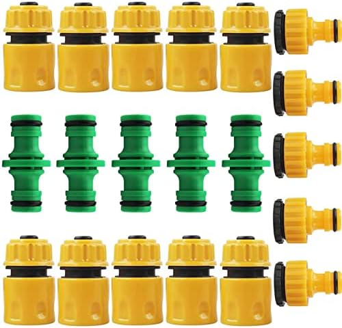 Hey Hobbygärtner! Dieses GESDYO Schlauchverbinder-Set macht deine Gartenbewässerung zum Kinderspiel! 20 Teile im praktischen Set - 10 Doppelsteckverbinder für 1/2 oder 3/4 Zoll, 5 Wasserhahnverbinder und 5 Schnellkupplungen. Aus hochwertigem ABS-Kunststoff - leichter als Eisen, aber genauso stabil und langlebig! Die gelb-grüne Farbkombination sieht nicht nur gut aus, sondern ist auch praktisch zu finden. Einfache Installation - kein Werkzeug nötig, einfach zusammenstecken und fertig! Vollständige Abdichtung garantiert - kein lästiges Tropfen oder Wasserverlust. Perfekt für Gartenbewässerung, Balkon-Pflanzen, Autowaschen oder auch für die Waschmaschine. Kompatibel mit 95% aller Outdoor-Wasserhähne - da passt es wirklich fast überall! Mit den verschiedenen Adaptern kannst du auch ältere Systeme problemlos anschließen. Ordnung im Gartenschuppen - alle Verbinder an einem Platz! Mach deine Gartenarbeit effizienter und stressfreier - bestell jetzt und hab alles griffbereit!