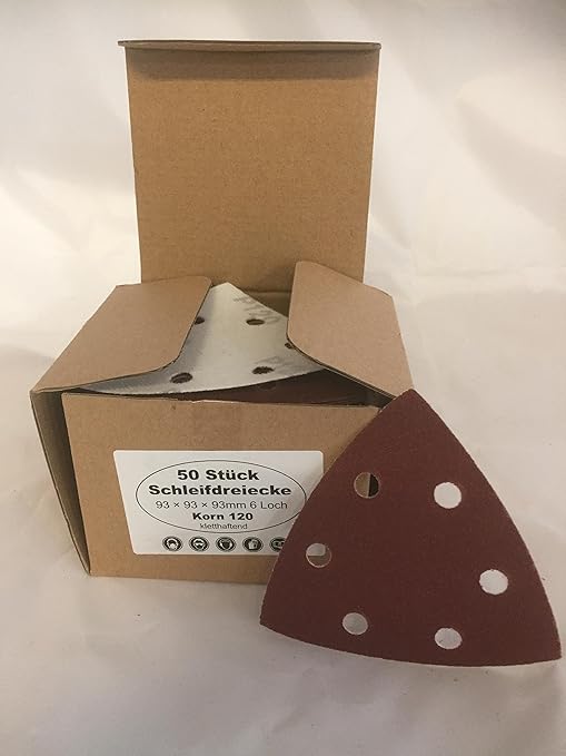 Alles für deine Schleifprojekte in einem Set! 120 hochwertige Schleifblätter für Dreieckschleifer in den Größen 93x93mm. Mit 8 verschiedenen Körnungen von grob (40) bis fein (400) bist du für jede Arbeit bestens ausgerüstet. Das Klettverschluss-System sorgt für sicheren Halt auf deinem Schleifer. Die 6 Staublöcher verhindern Verstopfungen und verlängern die Lebensdauer. Aus Aluminiumoxid für langanhaltende Leistung bei Metall, Holz, Kunststoff und mehr. Perfekt für Heimwerker und Profis - einfach die benötigte Körnung wählen und loslegen. Ein unschlagbares Preis-Leistungs-Verhältnis für makellose Schleifergebnisse!