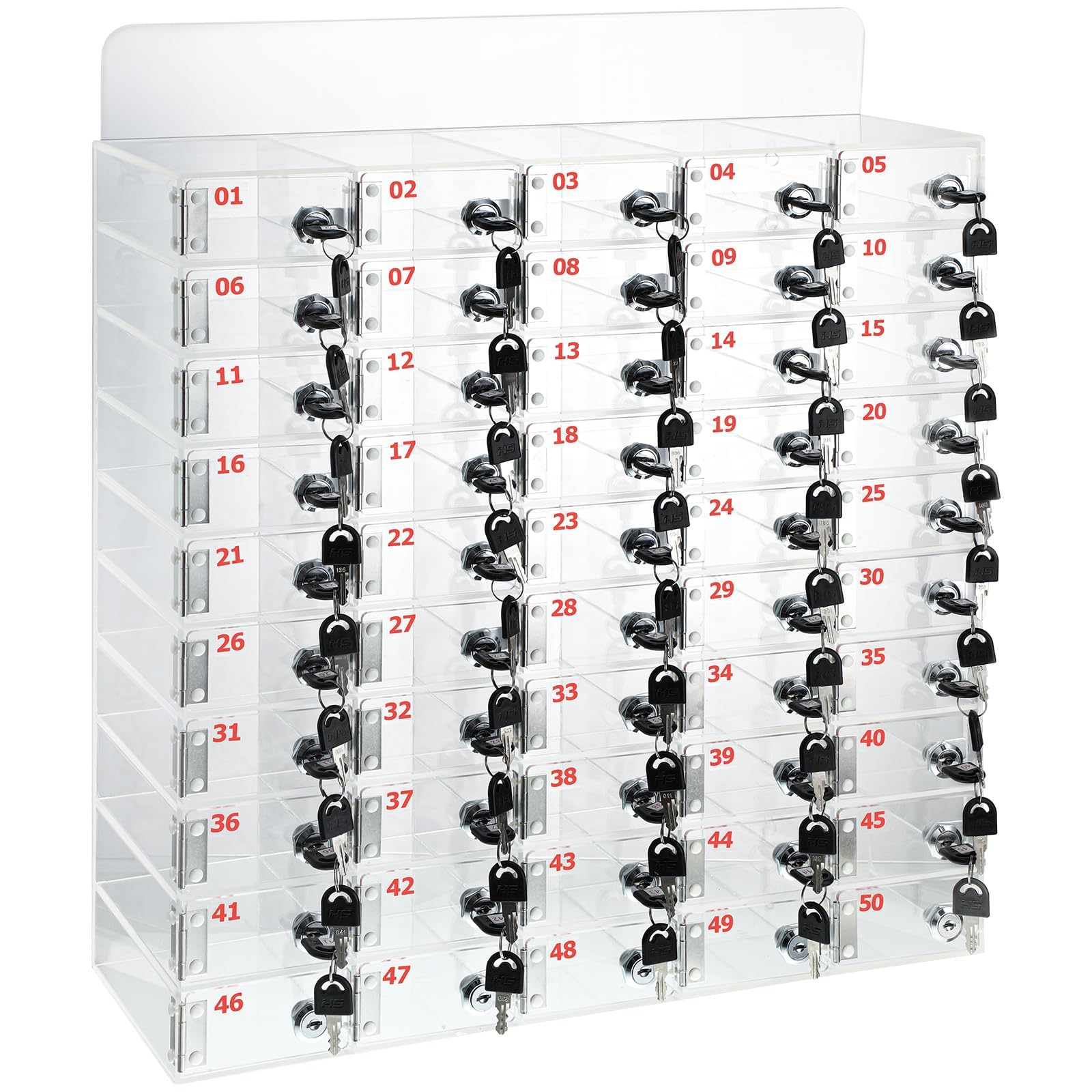 Jedes Fach ist groß genug für die meisten Smartphones - auch mit Hülle. Und durch das transparente Acryl behältst du immer den Überblick, ohne die Türen öffnen zu müssen.