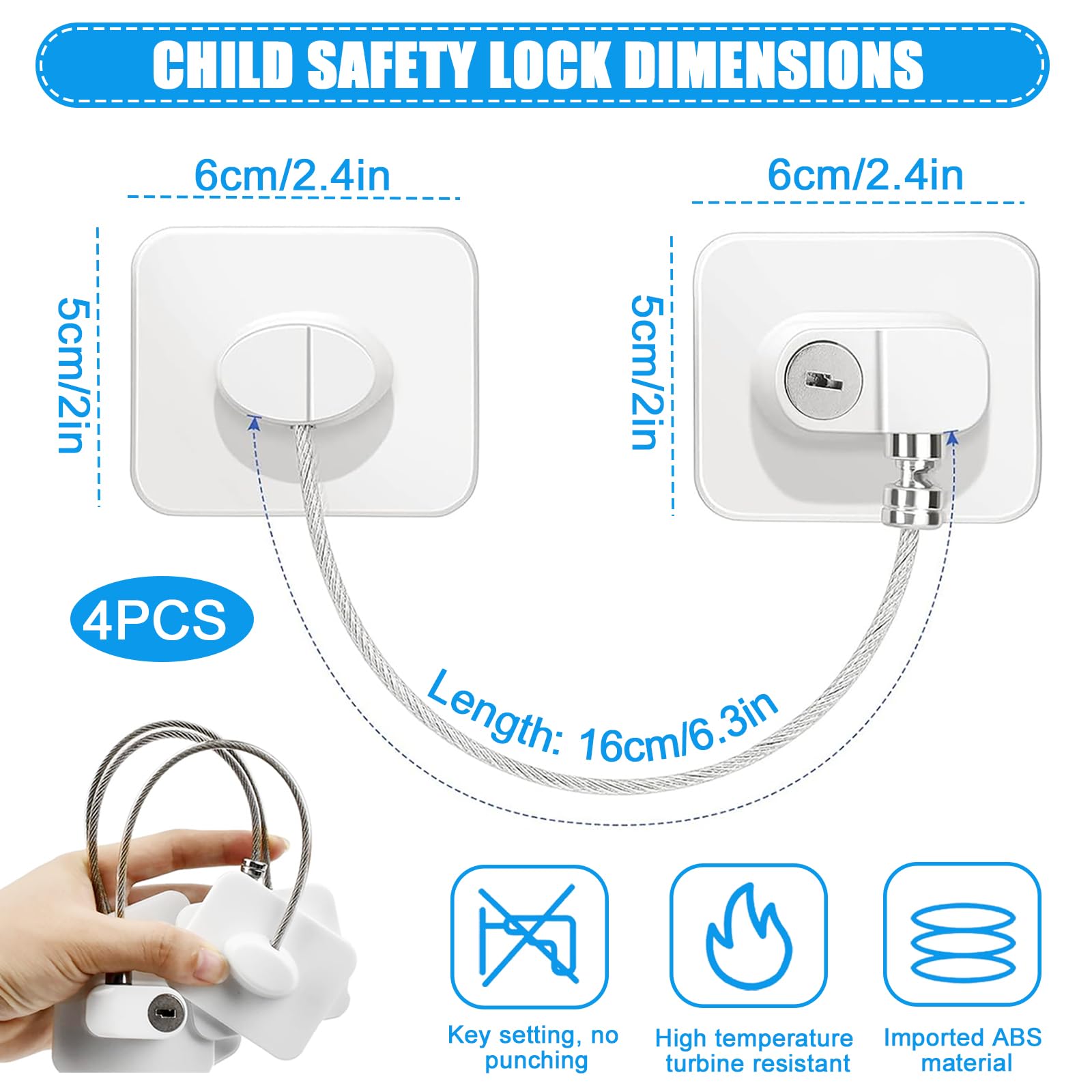 Sicherheit für eure Kinder! Dieses Set mit 4 Kindersicherungen und 4 Schlüsseln schützt Fenster, Kühlschrank, Schränke und Schubladen vor neugierigen Kinderhänden. Einfach selbstklebend anbringen - kein Bohren nötig! Hält auf glatten Oberflächen wie Glas, Fliesen, Marmor oder lackiertem Holz. Das Stahlkabel ist 21cm lang, insgesamt 27cm. Aus robustem ABS und Zinklegierung, rostfrei und langlebig. Der versiegelte Schlosskern sorgt für extra Sicherheit. Einfach Schutzfolie abziehen, an gewünschter Stelle ankleben und mit Schlüssel verschließen. Gibt euch peace of mind, wenn die Kleinen auf Entdeckungstour gehen. Auch super als Einbruchschutz für ebenerdige Fenster! Einfach in der Handhabung, wirkungsvoll im Schutz.