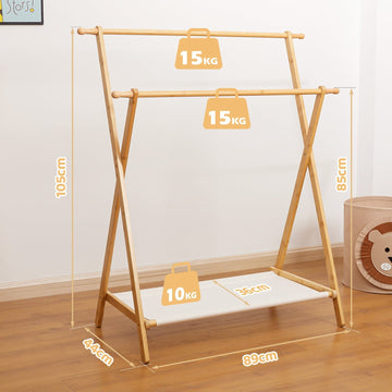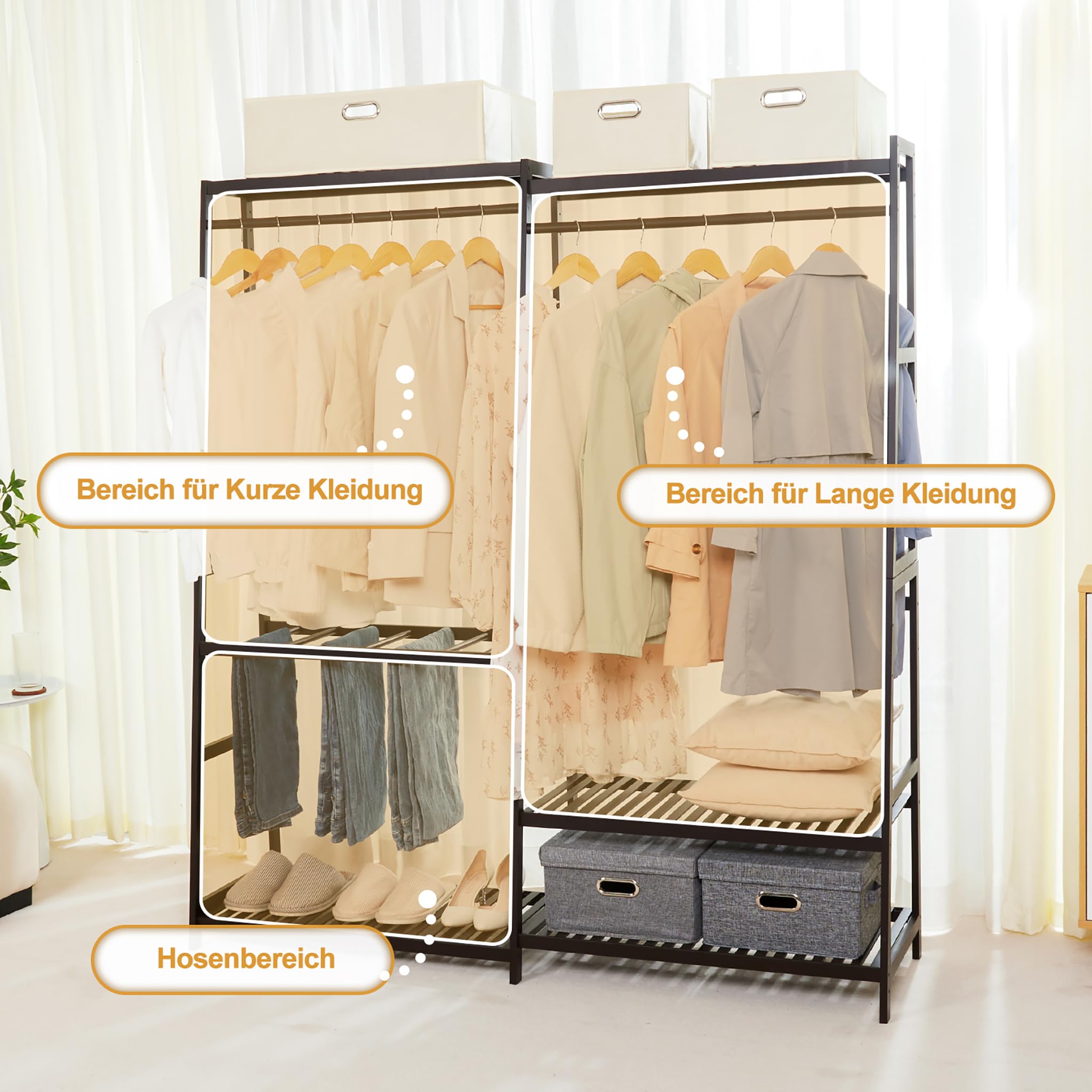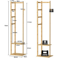 Platzprobleme? Dieser schmale Bambus-Garderobenständer ist die Lösung! Mit nur 30 cm Breite findet er selbst in der kleinsten Wohnung Platz. Drei Ablagen und zwei Haken bieten reichlich Stauraum für Jacken, Schals, Hüte und Schuhe. Aus natürlichem Bambus gefertigt, ist er nicht nur umweltfreundlich, sondern auch super stabil - trägt bis zu 70 kg! Die Höhe von 175 cm ist ideal für die meisten Kleidungsstücke. Mit Anti-Rutsch-Pads und Umfallschutz bleibt er sicher stehen. Perfekt für den Eingangsbereich, Flur oder Schlafzimmer. Einfache Montage - in wenigen Minuten steht deine neue Ordnungs-Lösung! Sieht nicht nur gut aus, sondern hilft auch, das Chaos im Blick zu behalten. Endlich alles an einem Platz!