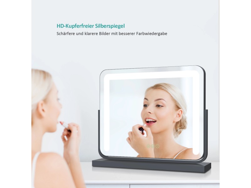 Der EMKE Schminkspiegel ist dein perfekter Partner für makelloses Make-up! Mit 180° neigbarem Kopf für optimale Betrachtungswinkel. Dimmbare LED-Beleuchtung (6000K Kaltweiß) - stufenlos von 10% bis 100% einstellbar. Inklusive abnehmbarem 3-fach Vergrößerungsspiegel für perfekte Detailarbeit. Ideal für Make-up, Rasur, Zahnseide und Hautpflege. Zwei Stromversorgungsarten: 4x AA Batterien oder USB-Kabel (Batterien nicht im Lieferumfang). Automatische Abschaltung nach 30 Minuten Inaktivität - super energiesparend! Kann auf dem Tisch stehen oder an der Wand hängen. Lieferumfang: Spiegel, Saugnapfspiegel, USB-Kabel, Bedienungsanleitung. Perfekt für zu Hause, Reisen oder das Gästebad. Nie wieder schlecht beleuchtetes Make-up - mit diesem Spiegel siehst du jedes Detail kristallklar. Professionelle Ergebnisse für jeden Tag - ob morgens in Eile oder für besondere Anlässe!