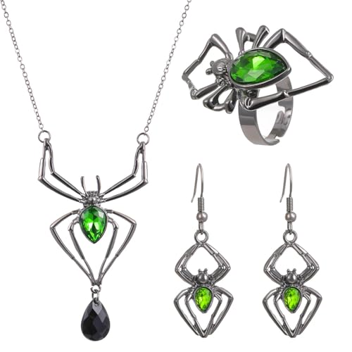 Alter, das Schmuck-Set ist ja mal richtig krass! Wenn du auf dunklen, mystischen Style stehst, dann sind diese Spider-Teile genau dein Ding. Stell dir vor: Eine fette Spinne als Halskette, dazu passende Ohrringe und ein Ring - alles voll mit funkelnden Strasssteinen die im Dunkeln leuchten!\\n\\nDas Material ist echt gut: Hochwertige Legierung die nicht anläuft oder die Haut reizt. Die Steine sind fest eingefasst und fallen nicht so leicht raus. Und die Details? Hammer! Jedes Spinnenbein ist genau ausgearbeitet, die Augen funkeln richtig böse.\\n\\nDer Style ist genau die Mischung aus Gothic und Punk die gerade voll im Trend liegt. Dazu ne schwarze Lederjacke, schwarze Klamotten und du ziehst alle Blicke auf dich! Ob auf dem Festival, der Halloween-Party oder einfach im Club - mit dem Set bist du der Star.\\n\\nWas ich mega finde: Die Teile sind nicht zu schwer! Die Ohrringe drücken nicht, die Halskette liegt gut an. Du kannst das Set also auch länger tragen ohne dass es nervt.\\n\\nUnd als Geschenk? Perfekt! Für die beste Freundin, die Schwester oder einfach für dich selbst. Jeder der anders sein will, wird dieses Set lieben. Einfach auspacken, anziehen und sich wie der König der Nacht fühlen!