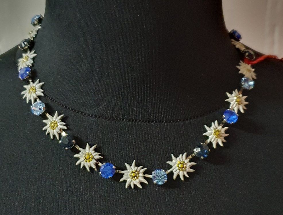 Oh, fürs Oktoberfest oder jede Trachtenparty: Dieses Clearine Schmuck-Set ist einfach wunderschön! Die künstlichen Perlen und Kristalle glitzern um die Wette, das Edelweiß-Motiv ist einfach klassisch. Die Halskette ist 38,5cm lang plus 6,9cm Verlängerung - passt also immer. Super als Geschenk verpackt mit Box und Beutel. Ideal für Hochzeit, Geburtstag oder natürlich Wiesn! Tipp: Nicht beim Baden tragen und in luftdichter Box aufbewahren. So glänzt dein Schmuck ewig!