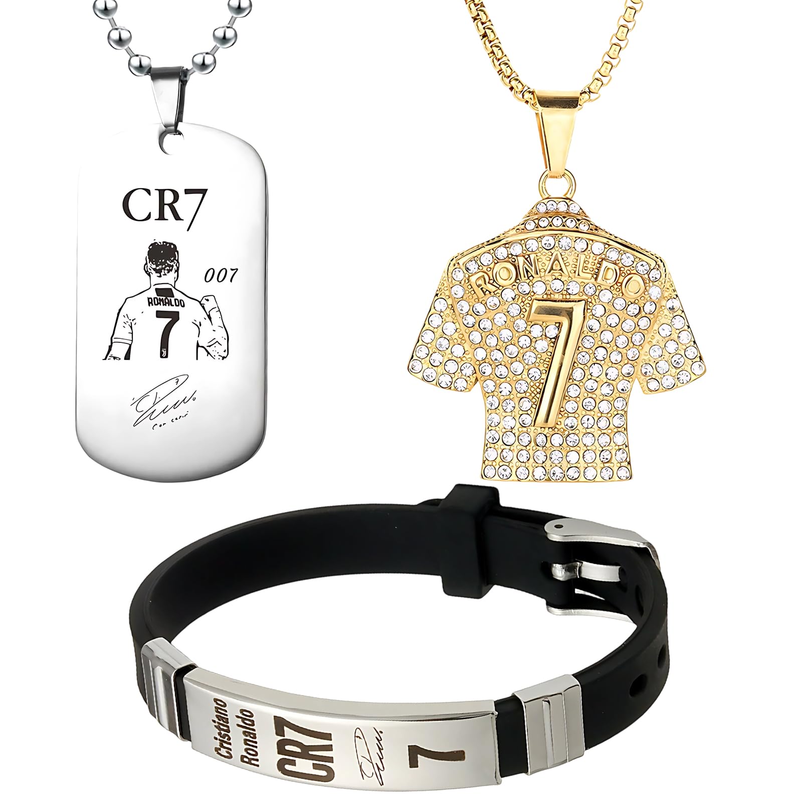 Zeig deine CR7-Leidenschaft! Dieses coole 3-teilige Schmuckset von Scinzene ist perfekt für alle Ronaldo-Fans. Enthält: CR7 Ring mit ikonischer Nummer 7, Trikot-Halskette mit robustem Anhänger und verstellbares Armband. Aus hochwertiger Metalllegierung - hautverträglich und langlebig. Perfekt fürs Stadion, Training oder als täglicher Begleiter. Trag die Teile einzeln oder kombiniert für den ultimativen Fan-Look. Kommt in edler Verpackung - ideal als Geschenk für Geburtstage, Weihnachten oder einfach so. Ob für Vereinsmitglieder, Nachwuchsspieler oder begeisterte Fans - mit diesem Set zeigst du deine Fußball-Leidenschaft stilvoll!