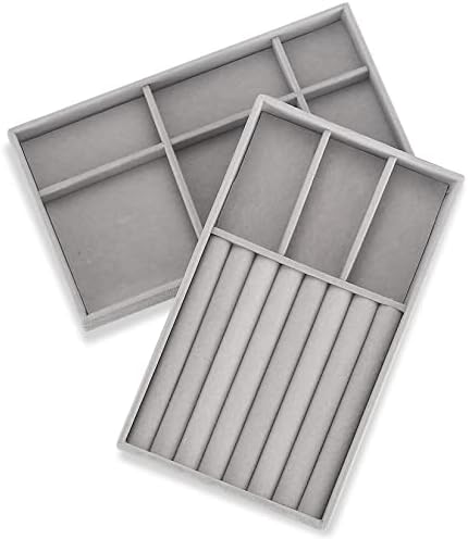 Schmuck ist schön – aber wo zum Teufel lässt man ihn liegen? Dieses Tablett schafft Abhilfe! Mit den zwei grauen Tabletts hast du endlich Ordnung im Chaos. Perfekt für Ringe, Ohrringe, Ketten und alles, was sonst noch so glitzert. Die Fächer sind genau richtig groß, sodass nichts verrutscht oder verloren geht. Du kannst die Tabletts einfach in die Schublade legen oder offen auf die Kommode stellen – sieht auch noch stylisch aus. Aus stabilem Material, aber trotzdem super leicht. Und das Beste: Es ist platzsparend und flach. So passt es in fast jede Schublade. Ob für dich zu Hause oder sogar für den Juwelier – hier wird jeder Schmuck zum Hingucker. Nie wieder suchen, nie wieder verknotete Ketten. Einfach alles sortiert ablegen und freuen. Auch super als Geschenk für die beste Freundin oder die Mama – Ordnung muss ja nicht langweilig sein. Einfach mal ausprobieren – du wirst sehen, wie entspannt der Morgen wird, wenn du weißt, wo dein Lieblingsschmuck ist!