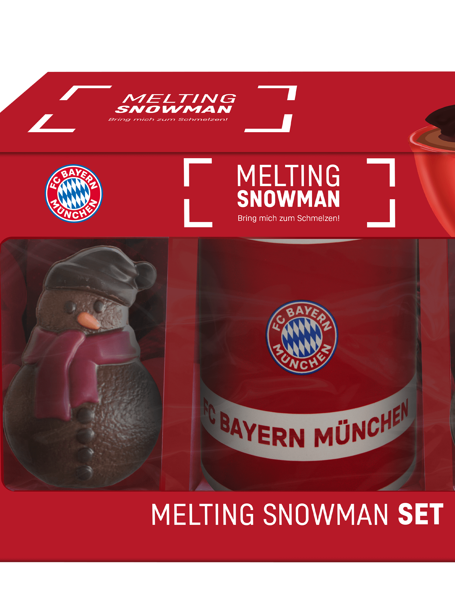 Mia san Mia - und mia san Schokolade! Dieses süße FC Bayern Set ist perfekt für alle Bayern-Fans, die es in der kalten Jahreszeit gemütlich mögen. Zwei niedliche Schneemänner aus brauner Schokolade warten darauf, in der mitgelieferten FC Bayern Tasse zu nem leckeren Heißgetränk zu werden. Einfach heiße Milch drüber und schon lösen sich die Schokofiguren auf - dabei kommen zarte Milchschokoladenstückchen und süße Mini-Marshmallows zum Vorschein! Schmeckt nicht nur super, sondern macht auch richtig Spaß zuzusehen. Das ganze kommt in nem stylischen Karton - perfekt als Geschenk für eingefleischte Bayern-Fans oder einfach als Belohnung für dich selbst. Offizieller FC Bayern Merchandise mit dem originalen Logo. Ob zu Weihnachten, zum Geburtstag oder einfach so - mit diesem Set bringst du garantiert ein Lächeln ins Gesicht! Einfach mal was Anderes als das übliche Fan-Shirt.