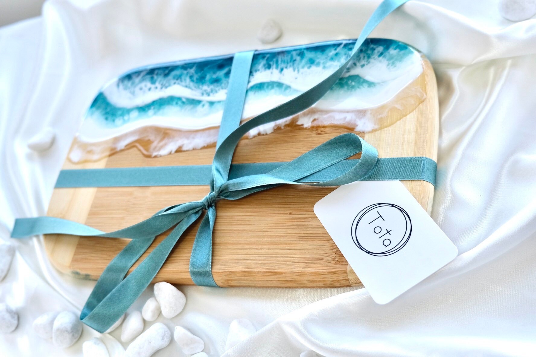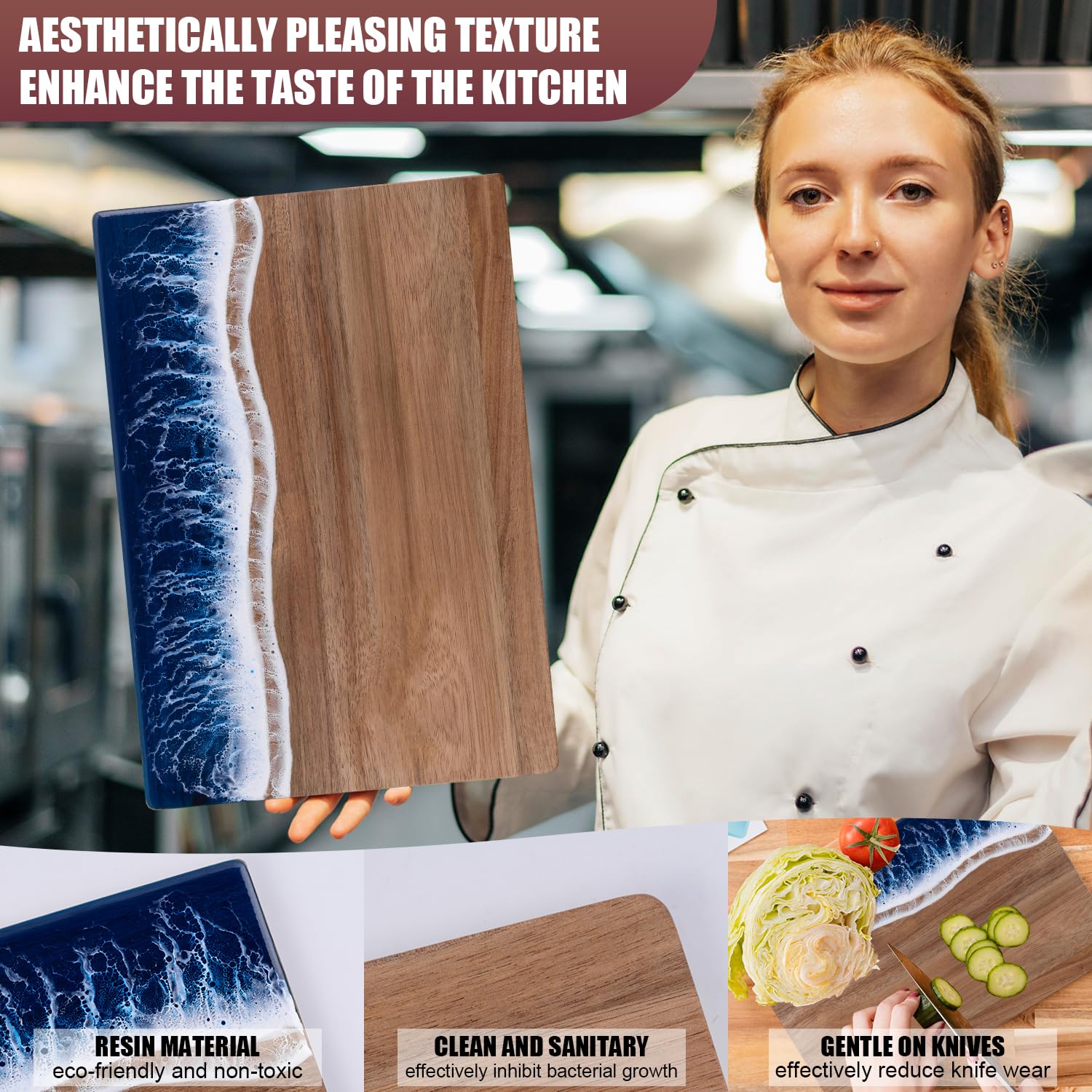 Ein absoluter Blickfang für deine Küche! Dieses handgefertigte Schneidebrett aus Epoxidharz und Holz sieht nicht nur fantastisch aus, sondern ist auch super praktisch. Das blaue Wellenmuster erinnert an das Meer - jedes Brett ist ein Unikat! Perfekt als Charcuterie-Brett für Käse, Aufschnitt und Fingerfood bei geselligen Abenden. Aber natürlich auch ein zuverlässiger Helfer beim täglichen Schneiden von Gemüse, Obst oder Fleisch. Die Oberfläche ist glatt und schonend für Messerklingen. Ein echter Hingucker auf jedem Esstisch - deine Gäste werden begeistert sein! Ob für Familienfeiern, Partys oder einfach nur für den täglichen Gebrauch - dieses Brett macht einfach Laune!
