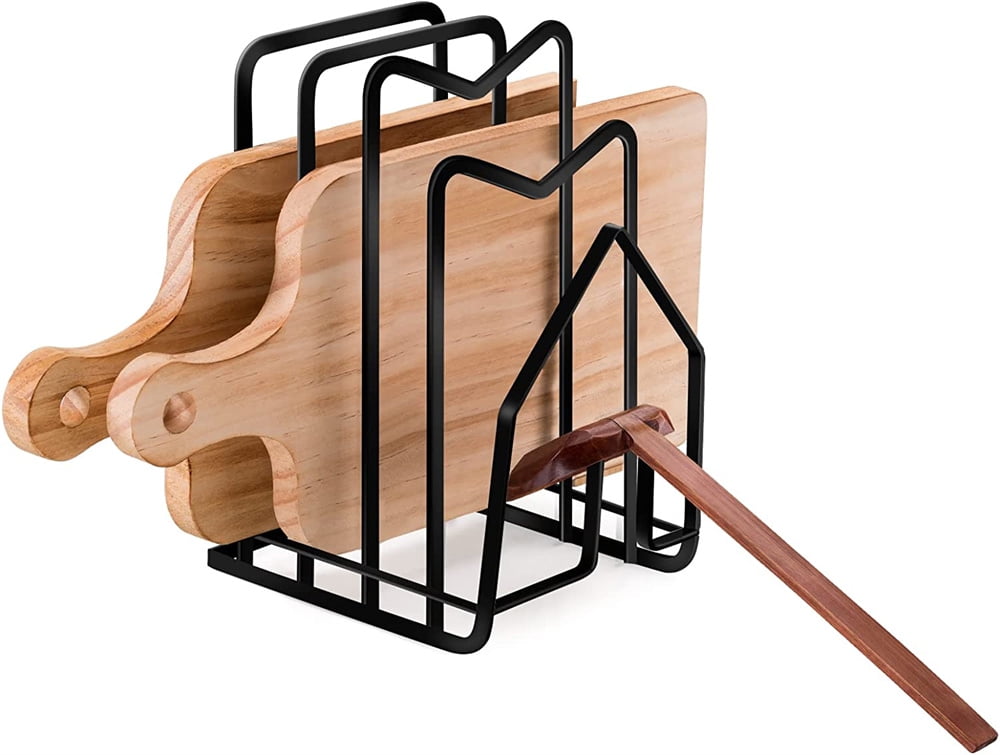 Endlich Ordnung in der Küche! Dieser praktische Ständer hält all deine Schneidebretter, Topfdeckel, Backbleche und Teller ordentlich und griffbereit. Das clevere vertikale Design spart jede Menge Platz auf der Arbeitsplatte oder in den Schränken. Die stabilen Metallteiler sorgen dafür, dass alles seinen festen Platz hat und gut belüftet wird. Der solide Holzstandfuß (16,6x10cm) gibt dem Ganzen Halt - selbst schwere Schneidebretter kippen nicht um. Perfekt für die Platzierung neben der Spüle, dem Herd oder der Arbeitsfläche. So hast du deine Küchenutensilien immer schnell zur Hand, wenn du sie brauchst. Einfach zusammenzubauen und supereinfach zu reinigen - einfach abwischen, fertig! Dieses vielseitige Organisations-System passt sich allen deinen Küchenbedürfnissen an und sieht dabei noch richtig gut aus. Hol dir jetzt mehr Ordnung und Komfort in deine Küche!