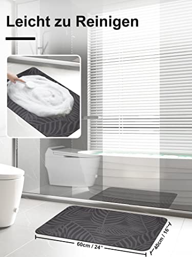 Mit 60x40 cm perfekt für Dusche, Badewanne oder Waschbecken. Die dunkelgraue Farbe ist praktisch und modern. Das Geheimnis: Spezielles Kieselgur-Material, das bis zu 500 ml Wasser aufsaugen kann!