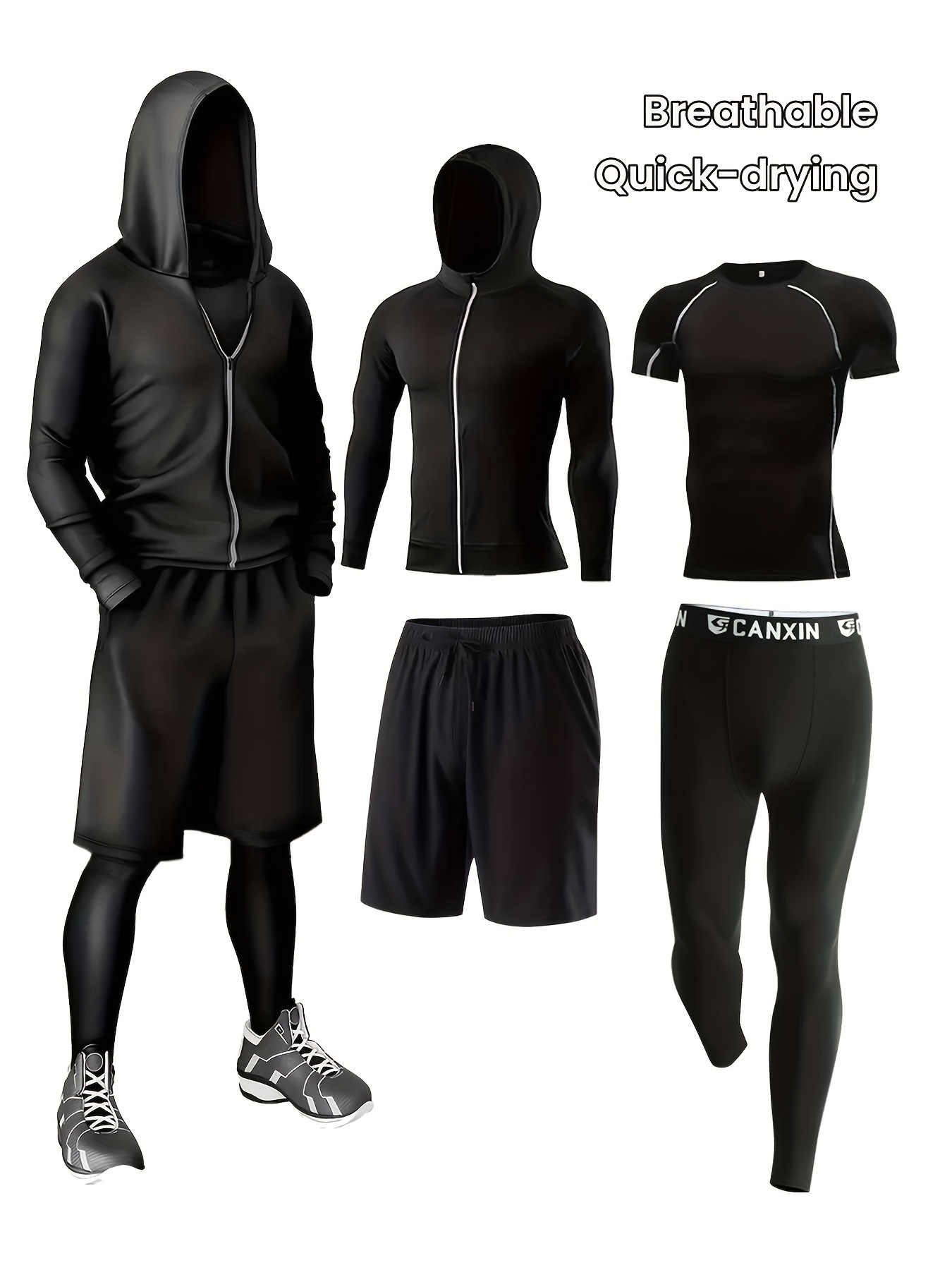 All-in-One Sportoutfit! Dieses 4-teilige Set hat alles, was du für dein Training brauchst: Langarm-Shirt, Kurzarm-Shirt, Shorts und Leggings. Perfekt abgestimmt für maximalen Komfort.