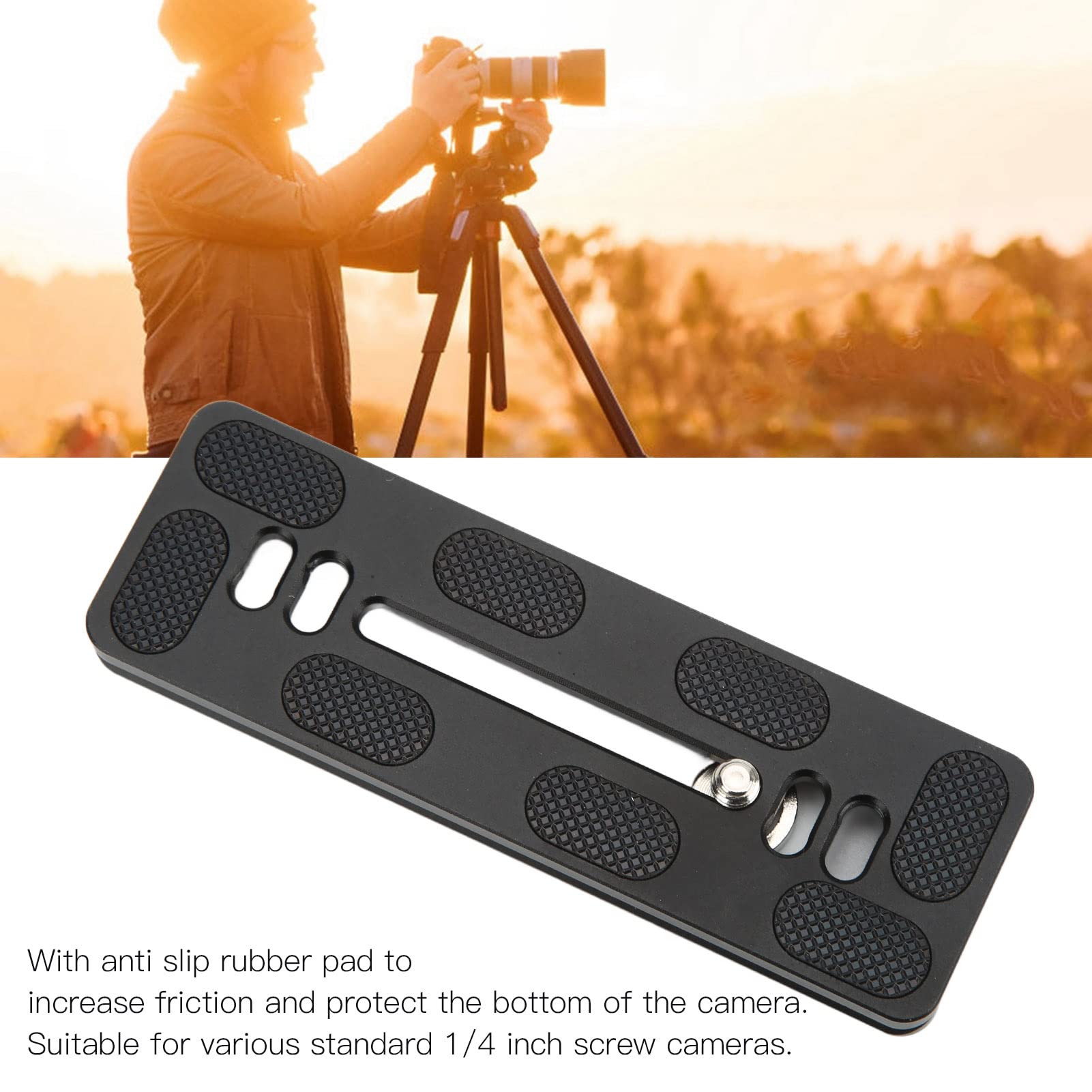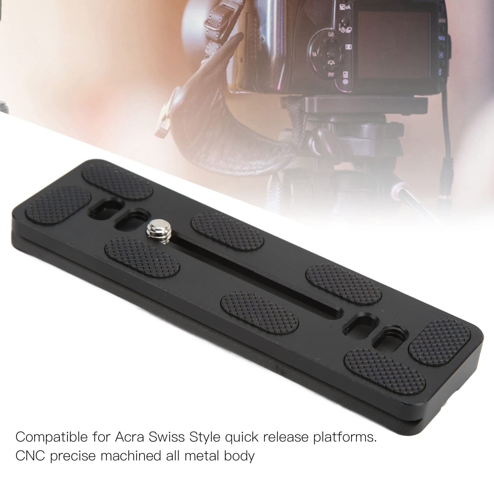 Professionelle Schnellwechselplatte für deine Kamera! 120mm lang, kompatibel mit Arca Swiss Stativköpfen. Mit integrierter Wasserwaage für perfekt ausgerichtete Fotos. Die Platte lässt sich 40mm vor- und zurückschieben für optimale Balance. 6 Gummipolster schützen deine Kamera vor Kratzern, Sicherheitsschrauben verhindern das Herunterfallen. Aus leichter Aluminiumlegierung, robust und langlebig. Inklusive 3/8 und 1/4 Zoll Adapter. Perfekt für DSLR, Camcorder oder Teleskope - einfach einklicken und loslegen!