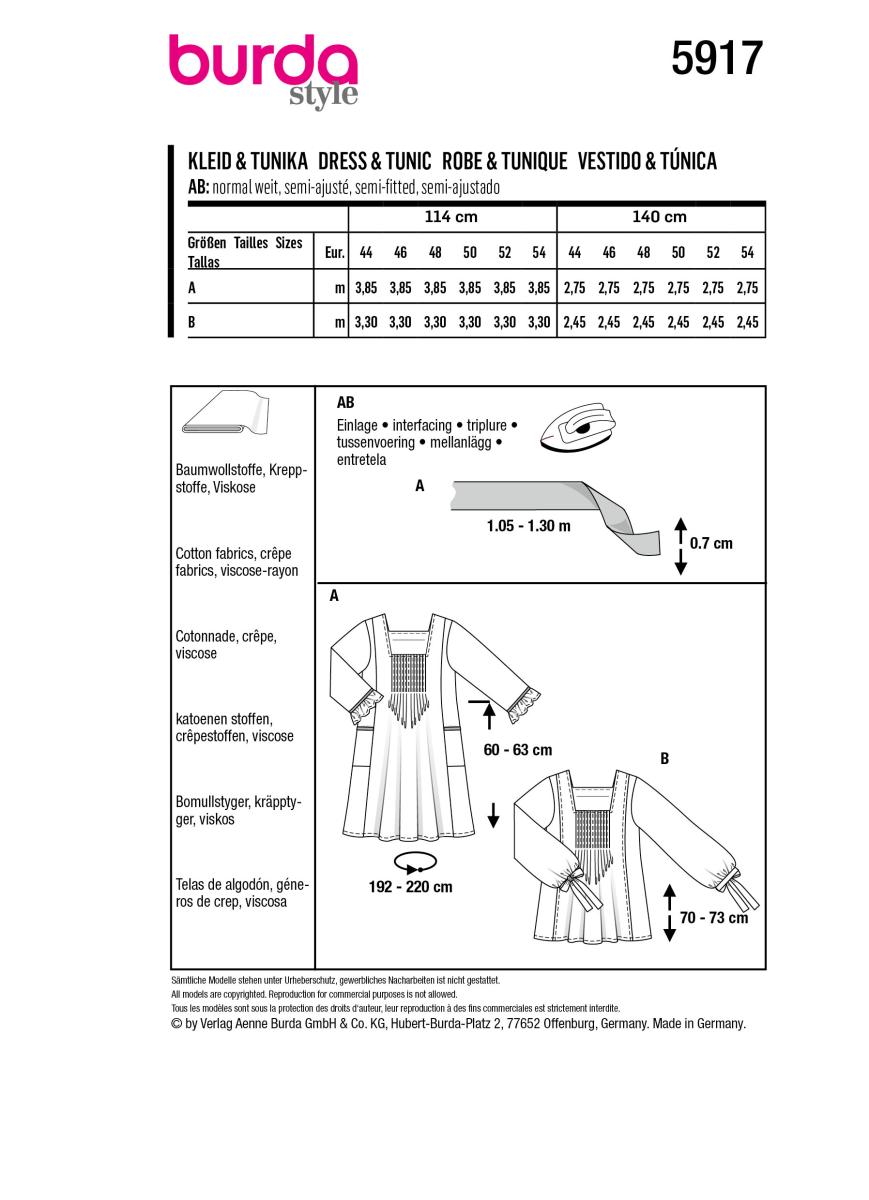 Näh-Begeisterte aufgepasst! Das Burda Schnittmuster B6632 für eine wunderschöne Tunika-Bluse. Zwei Varianten in einem Schnitt - ärmellos oder mit langen Ärmeln!\\n\\nBeide Versionen haben einen eleganten V-Ausschnitt mit Halsblende, die bis unten durchgeht. Super bequem zu tragen dank weiter Passform und dekorativen Fältchen.\\n\\nVariante A (ärmellos):\\n• Leicht und luftig\\n• Perfekt für warme Tage\\n• Elegant und feminin\\n\\nVariante B (langärmlig):\\n• Mit Manschettenärmeln\\n• Knopfleiste vorne\\n• Ganzjahres-tauglich\\n\\nDie Maße des Schnittmusters: 19x13cm - alles klar und übersichtlich dargestellt. Für Nähanfänger gut verständlich, für Profis ein schnelles Projekt.\\n\\nAus weich fließenden Stoffen wird diese Bluse zu deinem neuen Lieblingsteil! Ob zu Jeans, Rock oder Hose - immer passend.\\n\\nBurda-Qualität kennt man - gute Anleitung und passgenaue Schnitte. Ein Klassiker, der immer wieder trendy ist!