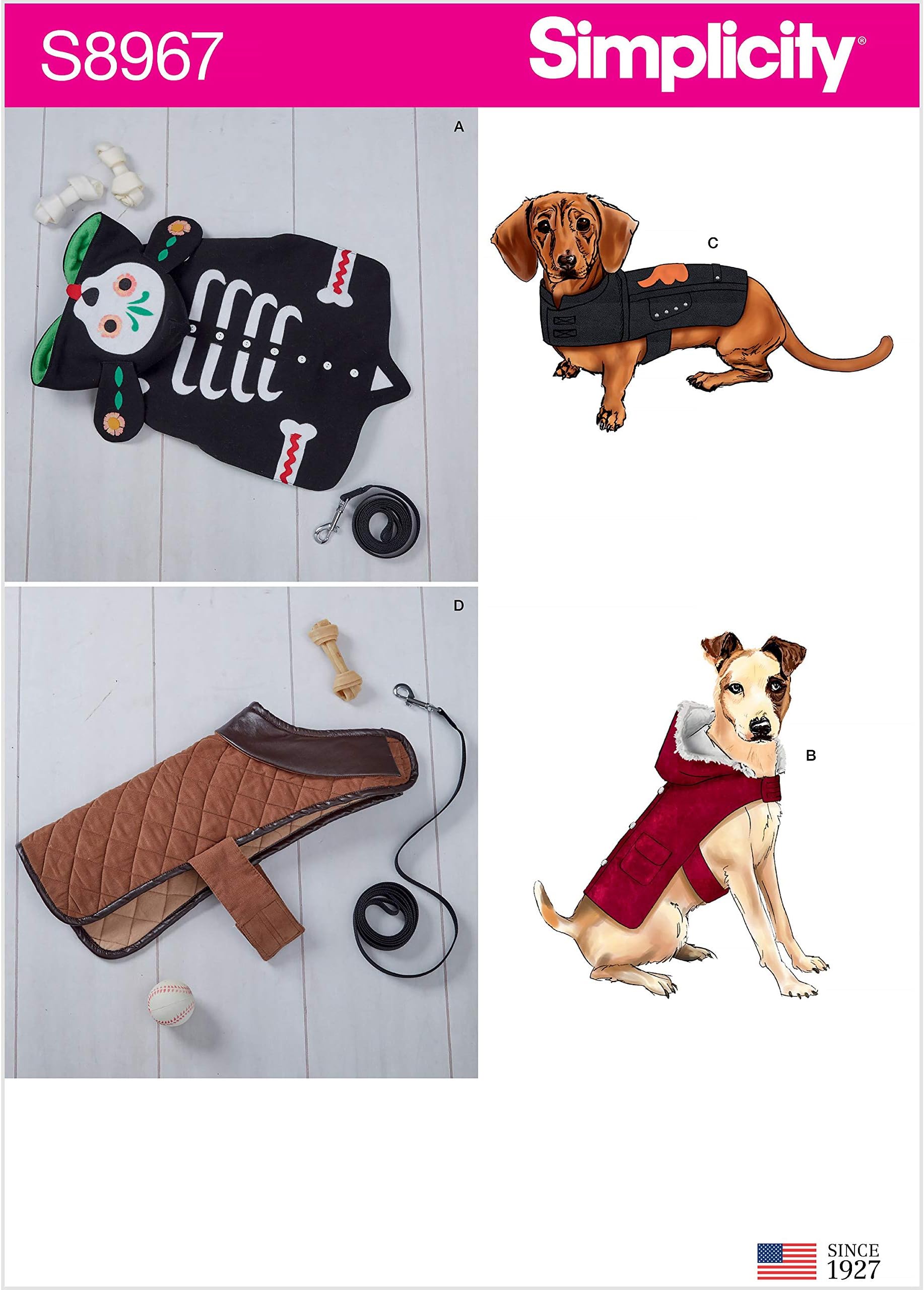 Näh deinem Hund den perfekten Mantel! Dieses Simplicity Schnittmuster 1239 von Patty Martin Designs enthält 5 verschiedene Looks für Hundemäntel in drei Größen (S-M-L). Super für Anfänger und fortgeschrittene Näherinnen! Enthält alle Anleitungen für professionelle Ergebnisse. Aus der bekannten Simplicity Reihe - Qualität die überzeugt! Perfekt für kalte Tage oder modische Hunde. Einfach ausschneiden, Stoff wählen und losnähen! Die Größen passen für die meisten Hunderassen. Mach deinem Vierbeiner eine Freude mit einem individuellen, selbstgenähten Mantel! Auch super als Geschenk für Hundefreunde. Mit Simplicity wird Nähen zum Kinderspiel! Inklusive detaillierter Schritt-für-Schritt-Anleitung. Dein Hund wird der stylischste in der Nachbarschaft sein!