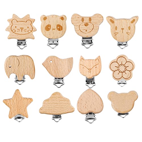 • 5er Set Schnullerclips Aus Holz - Praktisch Zur Befestigung Von Schnullern & Spielzeug