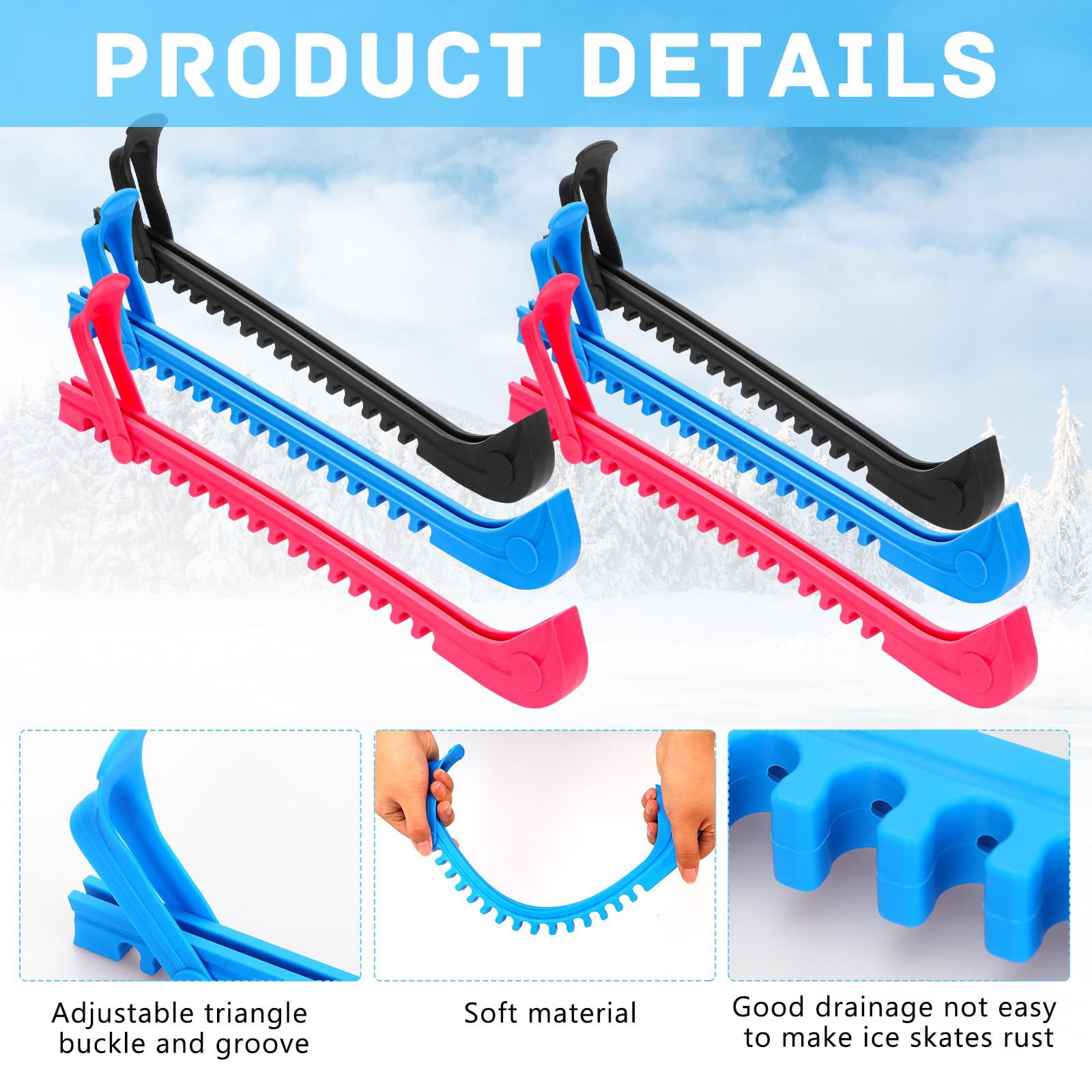 Pass auf deine teuren Schlittschuhklingen auf! Diese Eisschuards sind die perfekte Lösung, um deine Klingen beim Betreten der Eisfläche oder beim Transport zu schützen. Die verstellbaren Schnallen sorgen dafür, dass sie wirklich sicher sitzen und nicht verrutschen.\\n\\nDas Tolle: Sie passen sich durch ihr elastisches Material optimal an deine Schlittschuhe an. Egal ob du professionell läufst oder nur ab und zu aufs Eis gehst - diese Schoner sind für die meisten Skater geeignet. Die Installation ist super einfach: Einfach drüberschieben, festziehen, fertig!\\n\\nHergestellt aus robustem Kunststoff gibt's die Schoner in verschiedenen Farben: Schwarz, Gelb, Rot oder Blau. Mit 310x60 mm Größe passen sie auf die meisten Schlittschuhe. Das Set enthält ein Paar - also für beide Schlittschuhe.\\n\\nPerfekt für den Einsatz in Eisstadien, auf Natureis oder beim Training. Deine Klingen bleiben so vor Beschädigungen und Stößen geschützt, und du sparst dir das lästige und teure Nachschleifen!