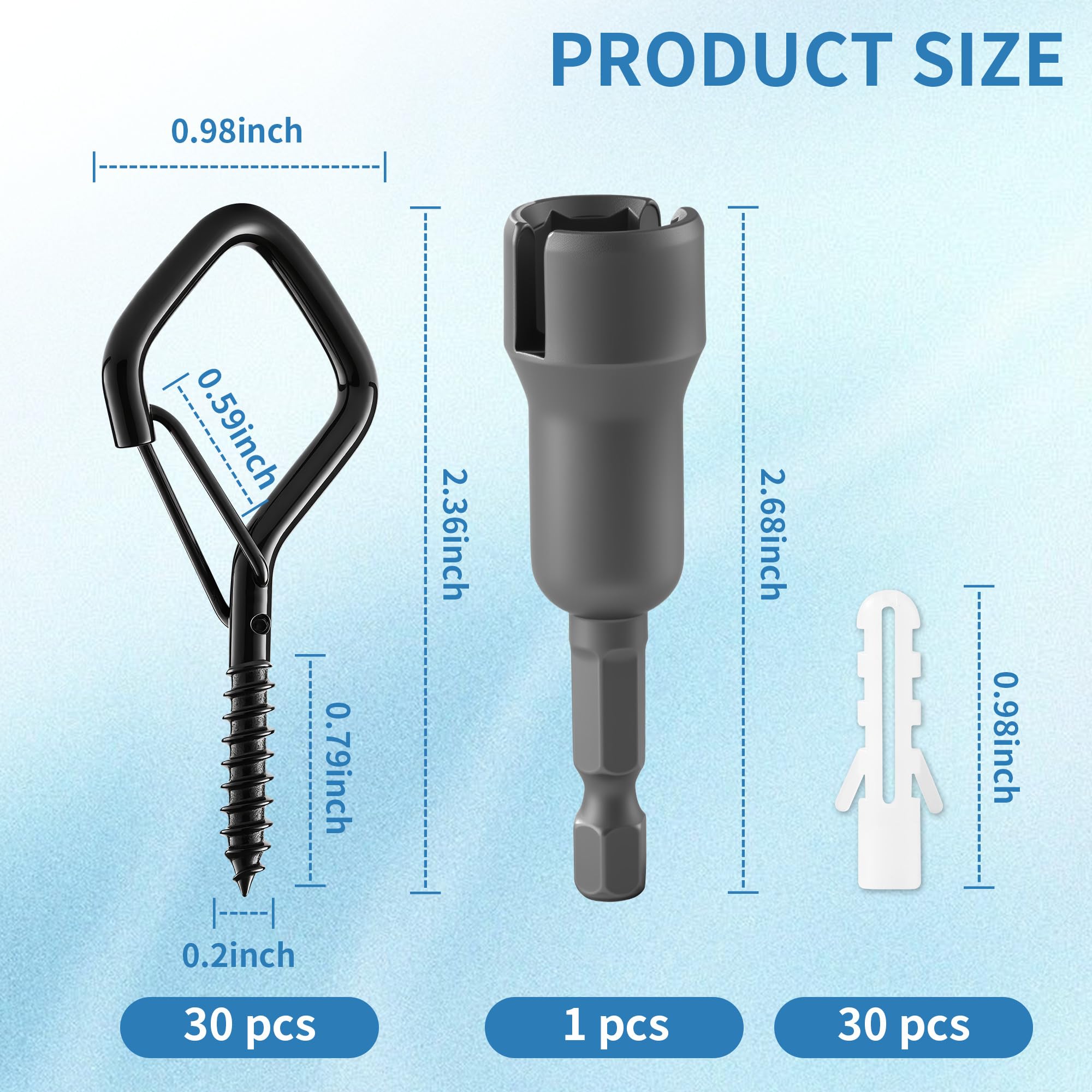 • 30 Stück Schraubhaken Edelstahl Schwarz - Mit Sicherung Für Pflanzen & Deko Bis 18kg
