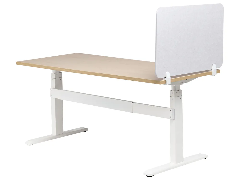 Ihr könnt die Trennwand entweder an der Tischkante befestigen oder zwischen zwei Arbeitsplätzen als Sichtschutz nutzen. Sieht modern aus und ist super pflegeleicht - Flecken einfach mit einem feuchten Schwamm entfernen. Richtig praktisch, wenn man mal seine Ruhe braucht!