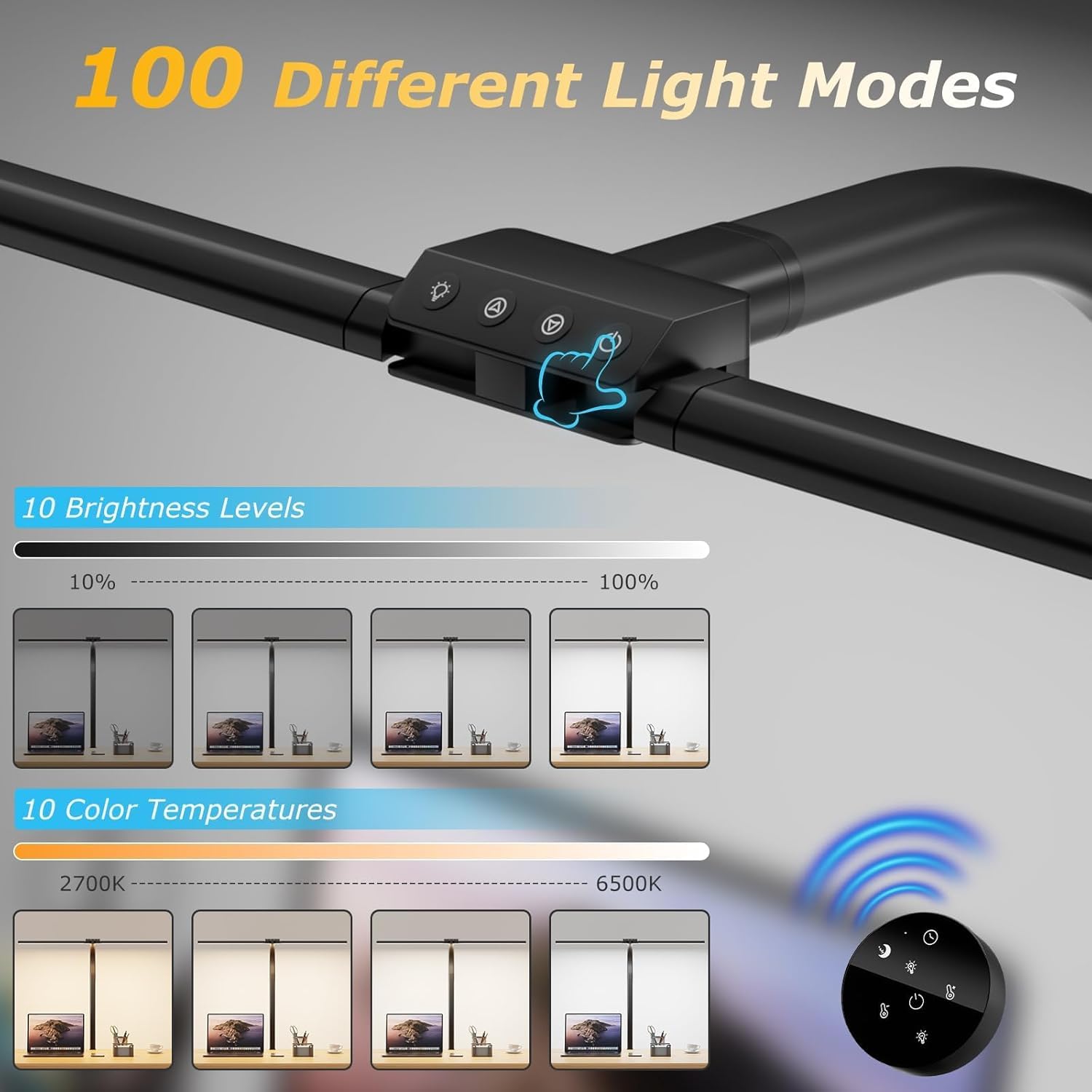 Die perfekte Beleuchtung für deinen Arbeitsplatz! Diese Tnight Lampe mit 24W Power beleuchtet sogar 190cm breite Schreibtische. Mit 2 Leuchtenköpfen - flexibel kombinierbar. 10 Farbtemperaturen (2700K-6500K) und 10 Helligkeitsstufen - finde dein perfektes Licht. Mit Fernbedienung und Touch-Control - bequeme Steuerung. Memory-Funktion - merkt sich deine Einstellung. 360° schwenkbar - immer die richtige Ausrichtung. Mit C-Klemme - passt an jeden Tisch. Augenschutz-Technologie - ermüdungsfreies Arbeiten. Perfekt für Homeoffice, Büro oder Studium. Mach deinen Arbeitsplatz zum Wohlfühlort!