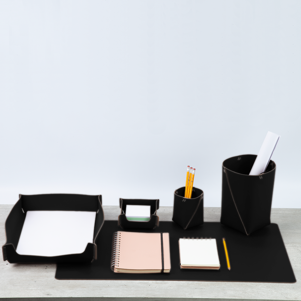 Schluss mit dem Chaos auf dem Schreibtisch! Der Vacavaliente Schreibtischorganizer aus robustem Leder in ansprechendem Rot bringt System in deine Büro-Utensilien. Das 4-teilige Set bietet praktische Aufbewahrung für Stifte, Notizzettel, Brieföffner und andere kleine Gegenstände, die sich sonst über die gesamte Arbeitsfläche verteilen. Das hochwertige Leder sieht nicht nur edel aus, sondern ist auch langlebig und verleiht deinem Arbeitsplatz eine persönliche Note. Die kompakten Maße machen den Organizer perfekt für jeden Schreibtisch - ob im Home-Office, im Büro oder für Schüler und Studenten. Einfach zusammenstecken und schon hast du alle wichtigen Dinge griffbereit, ohne lange suchen zu müssen. So wird die Arbeit gleich viel effizienter und angenehmer! Der Organizer ist so simpel wie genial: Keine komplizierte Montage, kein Einrichten - einfach hinstellen und sofort nutzen. Perfekt als Geschenk für Kollegen, als praktisches Accessoire für den eigenen Arbeitsplatz oder für alle, die Wert auf Ordnung und Stil legen. Mit diesem Organizer wird dein Schreibtisch endlich so aufgeräumt, wie du es dir immer gewünscht hast!