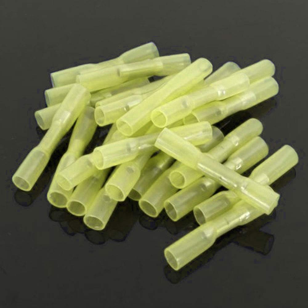 Professionelle Kabelverbindungen, die wirklich wasserdicht halten! Diese 50 Schrumpfverbinder in Gelb für 12-10 AWG Kabel sind perfekt für Auto, Marine und Hausinstallationen. Der verzinnte Kupferkern sorgt für extrem gute Leitfähigkeit und stabile Stromfluss. Mit 7 mm Innendurchmesser und 40,5 mm Länge passen sie ideal für verschiedene Kabelstärken. Einfach die Kabelenden in die Verbinder stecken, mit einer Crimpzange quetschen und mit Hitze (Fön oder Heißluft) schrumpfen lassen - schon ist die Verbindung wasserdicht, korrosionsbeständig und zugfest. Perfekt für Litzen- und Volldraht gleichermaßen. Die farbliche Kennung nach Drahtstärken macht die Auswahl einfach. Im praktischen Kunststoffbehälter geliefert - super organisiert und griffbereit für dein nächstes Elektroprojekt. Ob für Auto-Elektrik, Boote oder Hausinstallationen - mit diesen Verbindern machst du nichts falsch!