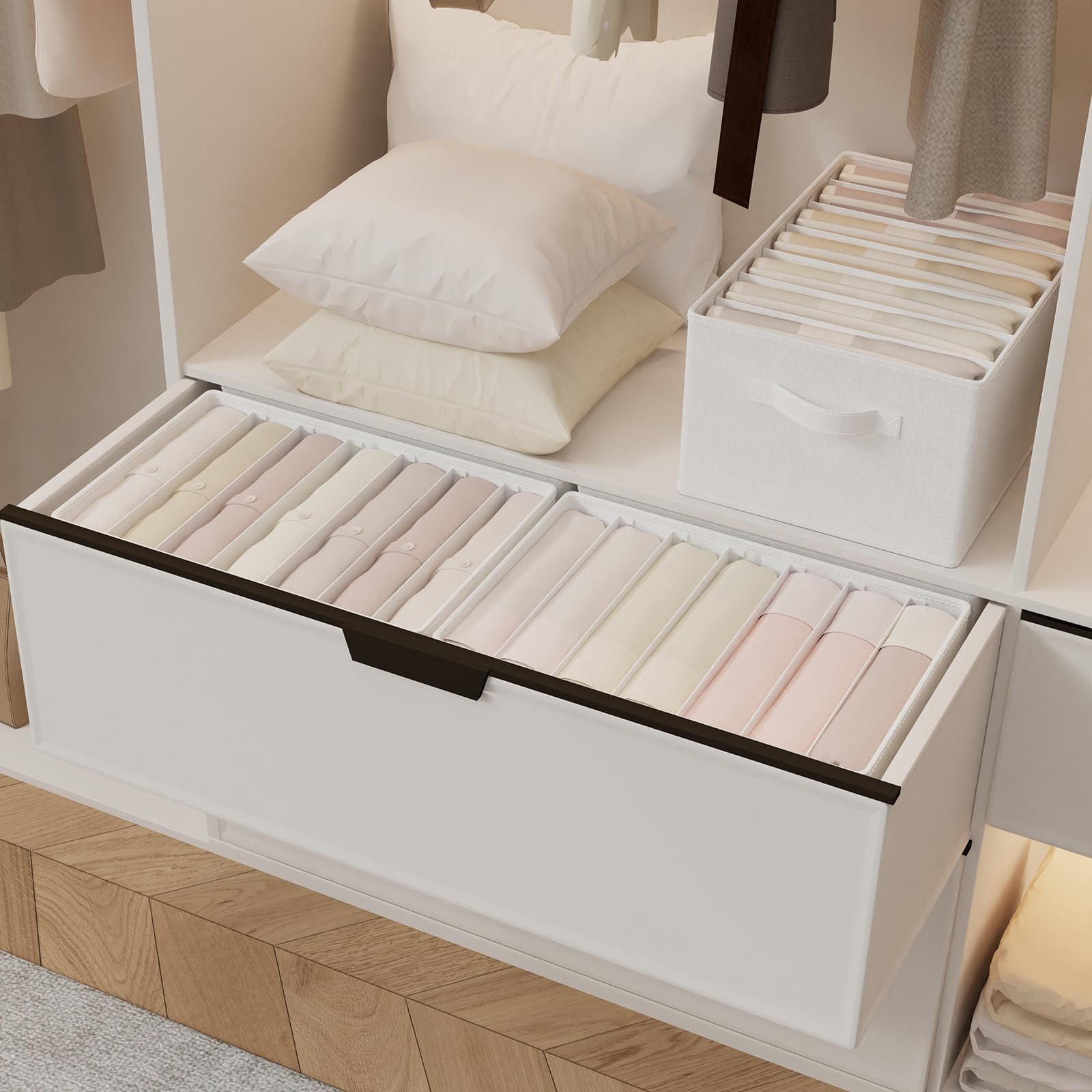 Endlich Ordnung im Schrank! Diese praktischen Organizer-Boxen sind die Lösung gegen das Chaos in deinen Schubladen. Im 2er Set mit je 7 Fächern kannst du BH, Socken, Slips und andere Kleinteile perfekt sortieren. Maße: 40x30x20cm - passen super in die meisten Schubladen und nutzen den Platz optimal aus. Aus weichem Vliesstoff mit stabiler Karton-Verstärkung - halten super in Form und sind trotzdem leicht. Die offene Vorderseite lässt dich sofort sehen was wo liegt. Mit praktischen Griffen an beiden Seiten einfach rausnehmen und bewegen. Einfach zusammenstecken - keine komplizierte Montage. Wenn du sie mal nicht brauchst, klappst du sie einfach flach zusammen. Super für T-Shirts, Babykleidung, Accessoires und natürlich Unterwäsche. In dezentem Grau sehen sie auch noch gut aus. Nie wieder suchen - alles hat seinen festen Platz!